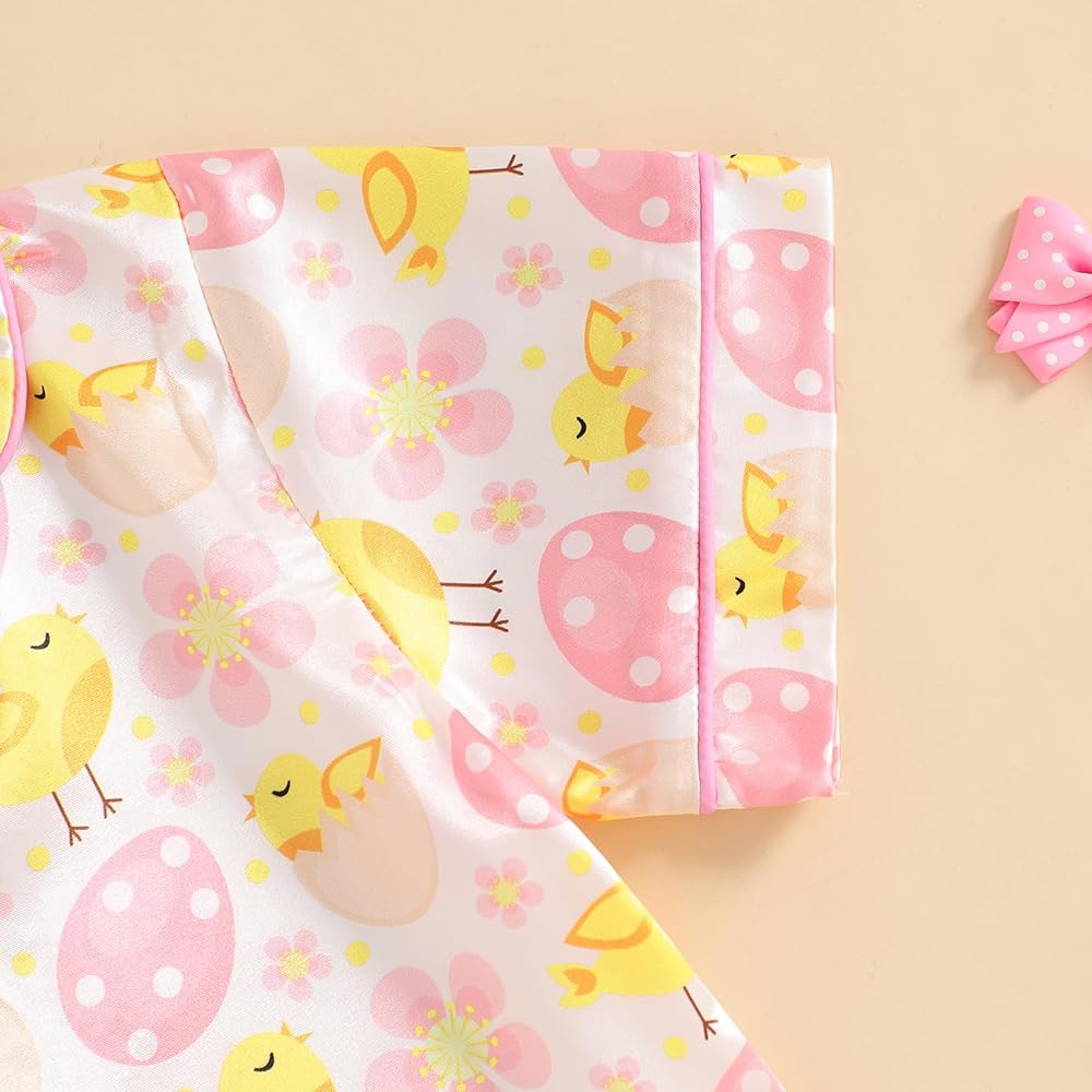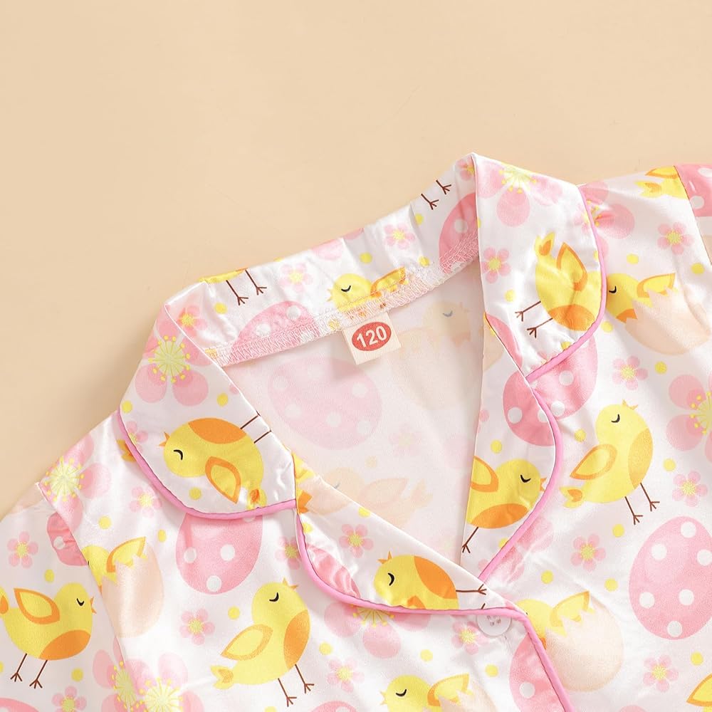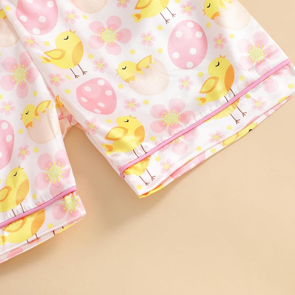 • High-Quality Material: Toddler girl easter bunny pajama sets girls are made of 100% polyester material; Lightweight, soft, comfortable and breathable, ensuring good skin comfort. Easter pajamas girls, bunny pajamas toddler, kids satin silk pajamas