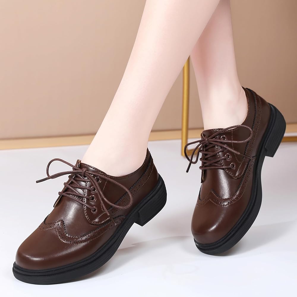 【مواد عالية الجودة】 أحذية أوكسفورد للسيدات السوداء مصنوعة من نسيج جلد براءة اختراع عالية الجودة لضمان المتانة. كل غرزة من أحذية Brogue Oxford البريطانية الكلاسيكية تظهر المهارات المصنوعة يدويًا الرائعة لإنشاء مظهر رائع.