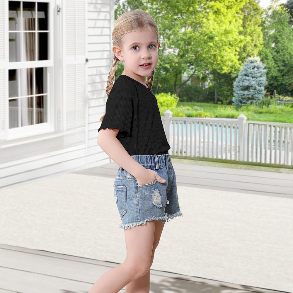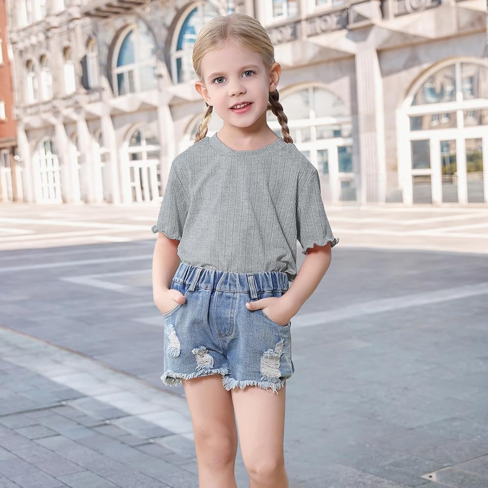 رقبة مستديرة وقصيرة: مصممة مع رقبة دائرية كلاسيكية وملاءمة مريحة ، هذه القمصان القصيرة الأكمام الصغيرة تضمن التهوية والراحة. الأكمام المكررة الجميلة تضيف لمسة مرحة أنثوية ، مما يجعل هؤلاء الفتيات الرضيعات محملات عصرية