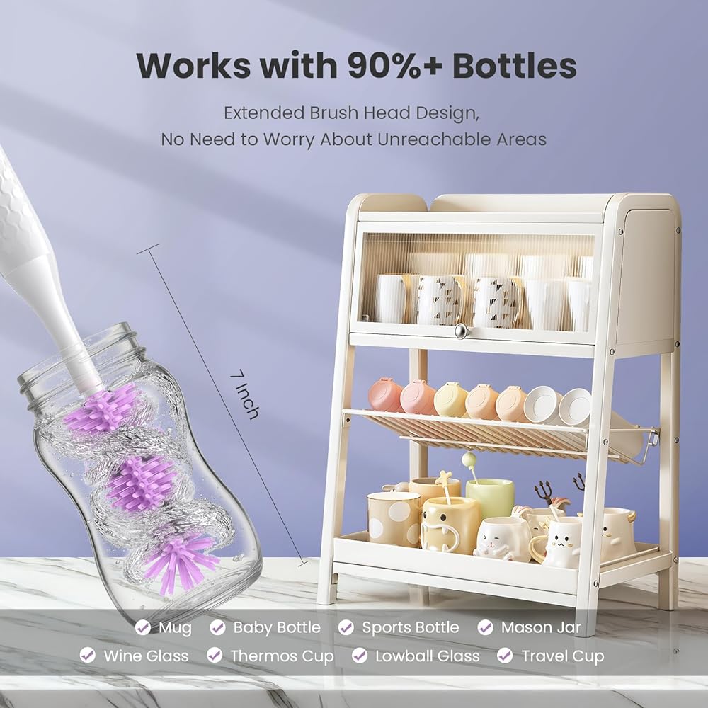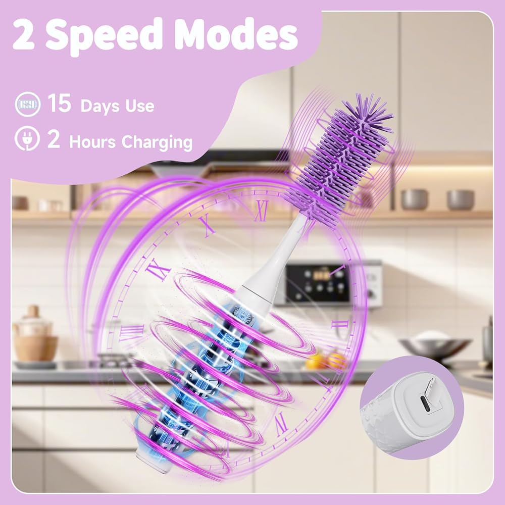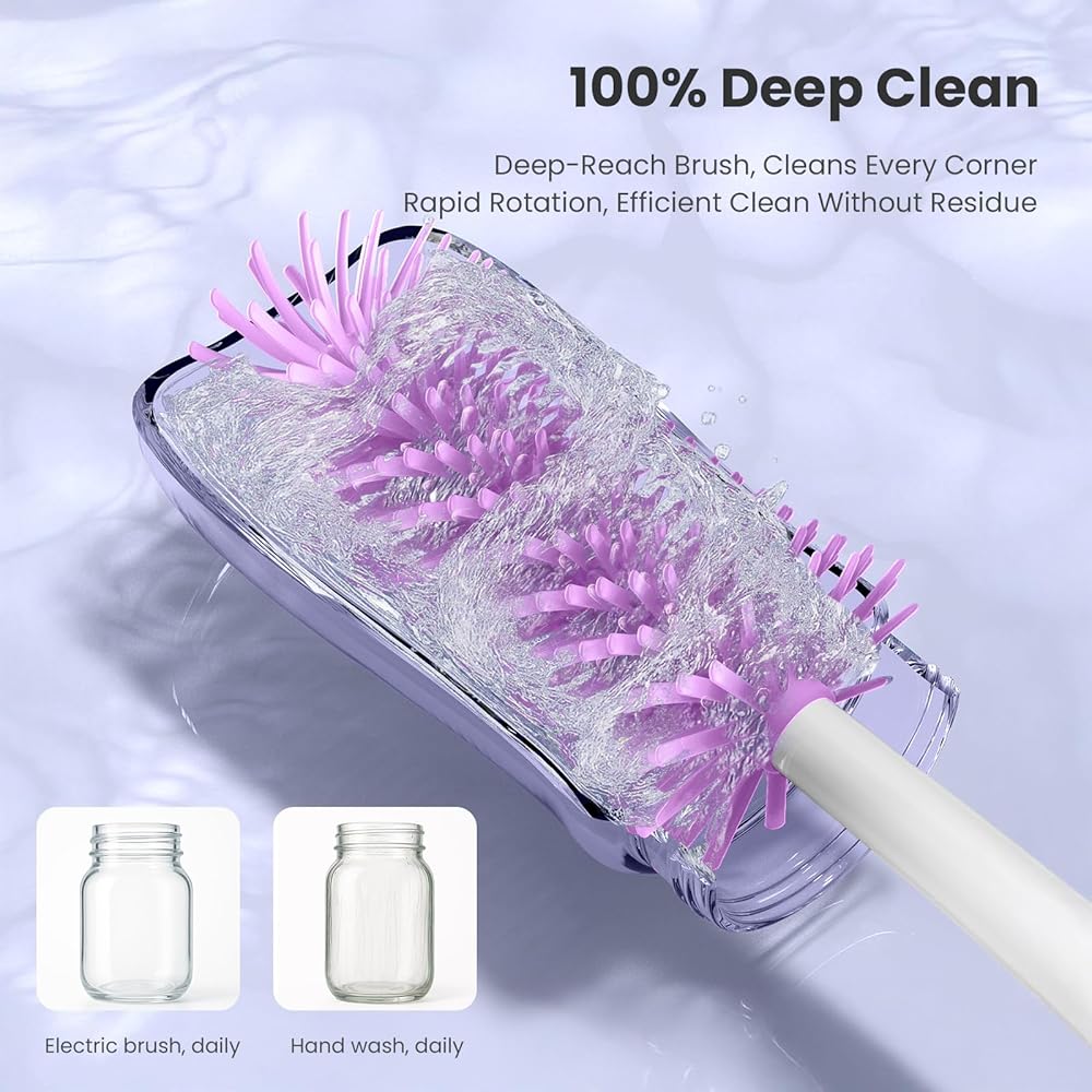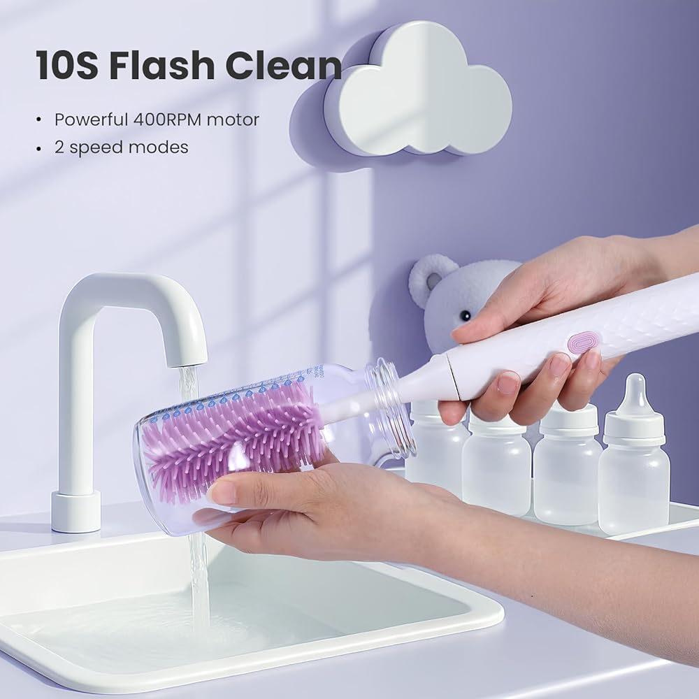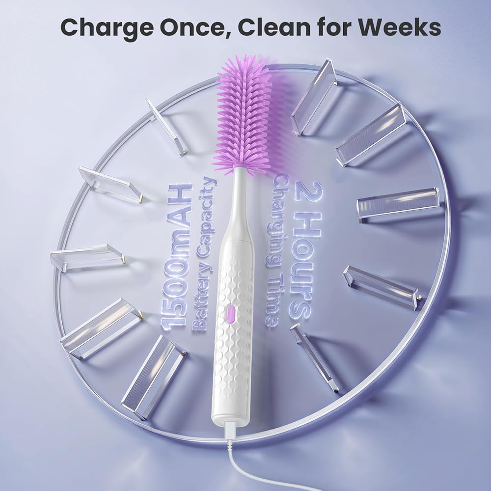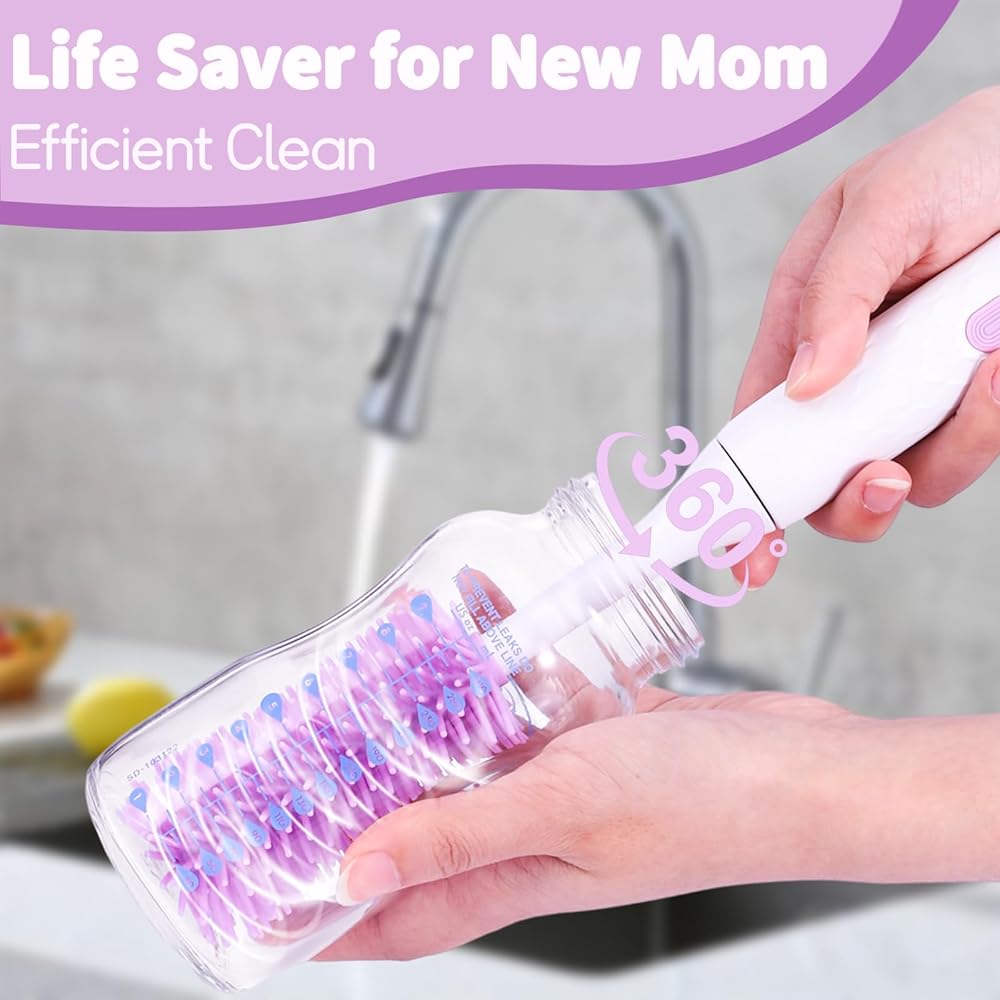التنظيف الفعال لـ MOM: يعمل منظف فرشاة الزجاجة الكهربائية لدينا على 300-400 دورة في الدقيقة مع وضعين عالي السرعة ، وتنظيف فعال 360 درجة ، يمكنك استخدامه لتنظيف زجاجة في 30 ثانية ، وتوفيرك من سلالة المعصم. إذا كنت لا تزال تكافح مع تنظيف زجاجة أطفال لا نهاية لها ، فهذا بلا شك هو الخيار الأمثل