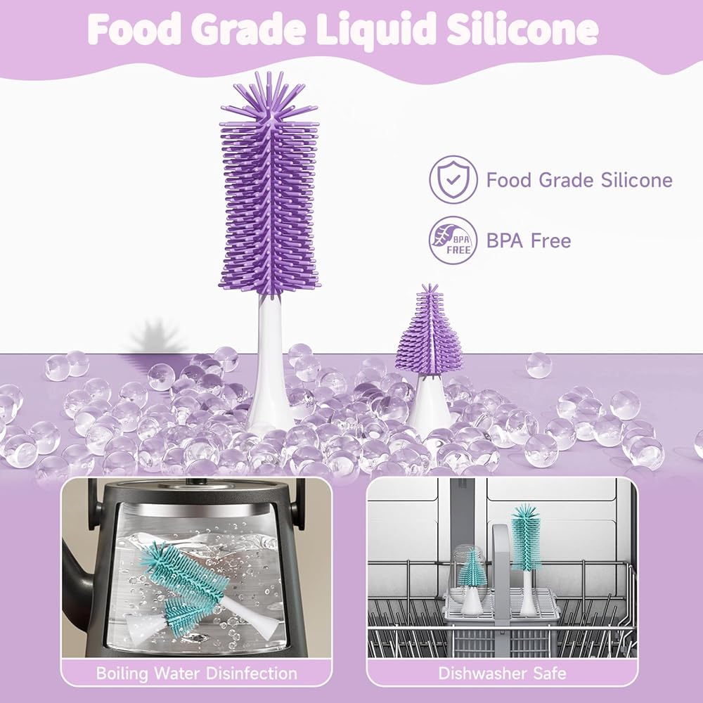 المواد الآمنة من الدرجة الغذائية: مصنوعة من السيليكون السائل من فئة الطعام ، خالية من BPA ، يمكن أن تمنع فرشاة زجاجة السيليكون الأكثر ليونة وحفر مصاصة الخدش الزجاجة البلاستيكية ، ويمكن تطهيرها من خلال الماء المغلي أو غسالة الصحون ، مما يضمن صحة طفلك. يمكن أن يؤدي وضع الصابون في الزجاجة إلى توفير المزيد من الصابون