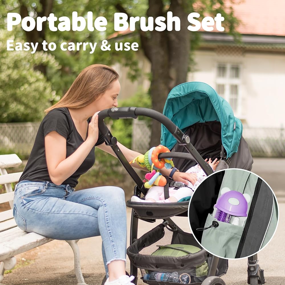 الكل في مجموعة فرشاة سفر واحدة: تشتمل فرشاة زجاجة الأطفال على شكل دب على فرشاة زجاجة كهربائية ، وفرشاة مصاصة للتصميم البسيط ، وموزعة الصابون المحمولة للصابون السائل ، وفرشاة القش فائقة الدقة ، ورفع التجفيف ، وصندوق التخزين. يناسبها بسهولة في حقيبة حفاضات ، مما يوفر لك الراحة سواء كنت في المنزل أو أثناء التنقل