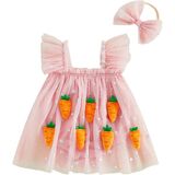 Toddler Girl Easter Day Tutu Dress Bunny Carrots Layered Tulle Dress Sleeveless Cake Smash Party Princess Dress