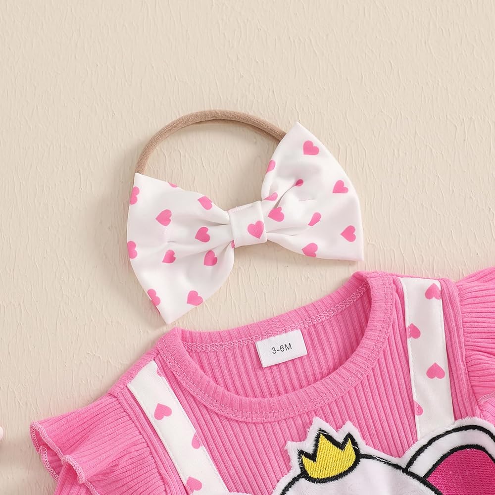 طفلة صيف- صيف صيف بذلة بنسل: غلاف قصير ، رقبة مستديرة ، تطريز بقرة ، خليط ، قاع جرس ، إغلاق المفاجئة ، يسهل تغيير الحفاضات ، ويكمل عصابة القوس المطابقة المظهر. ستبدو طفلك من المألوف وجميل في هذا الرومبير بقرة