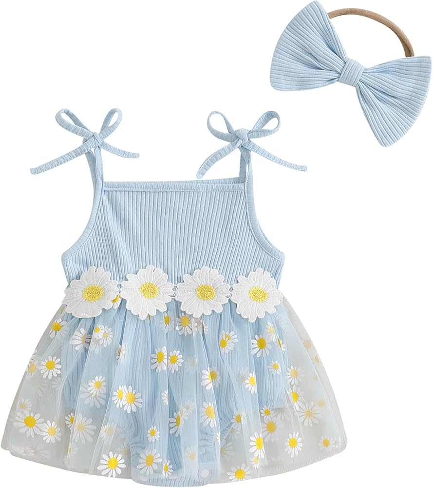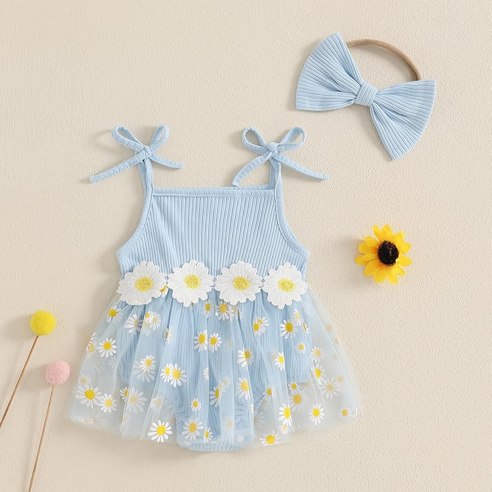 Newborn baby girl clothes daisy ribbed bodysuit sleeveless romper dress summer outfit for girls 3 6 9 12 18 months