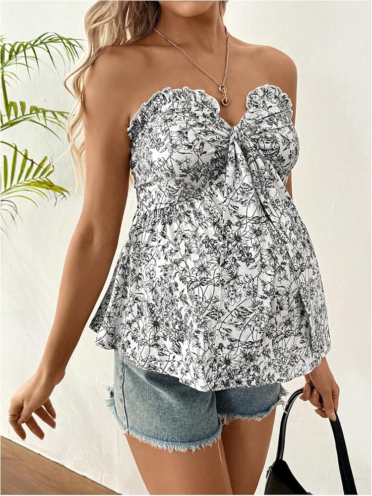 • Features: Bow knot, strapless, slim fit, flared hem bandeau top, resort wear for pregnancy women