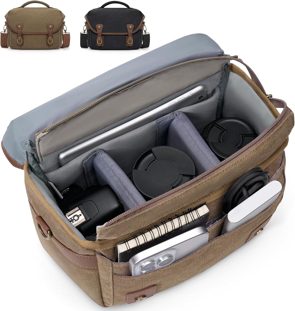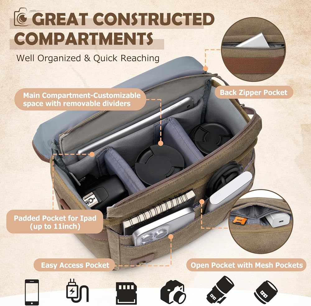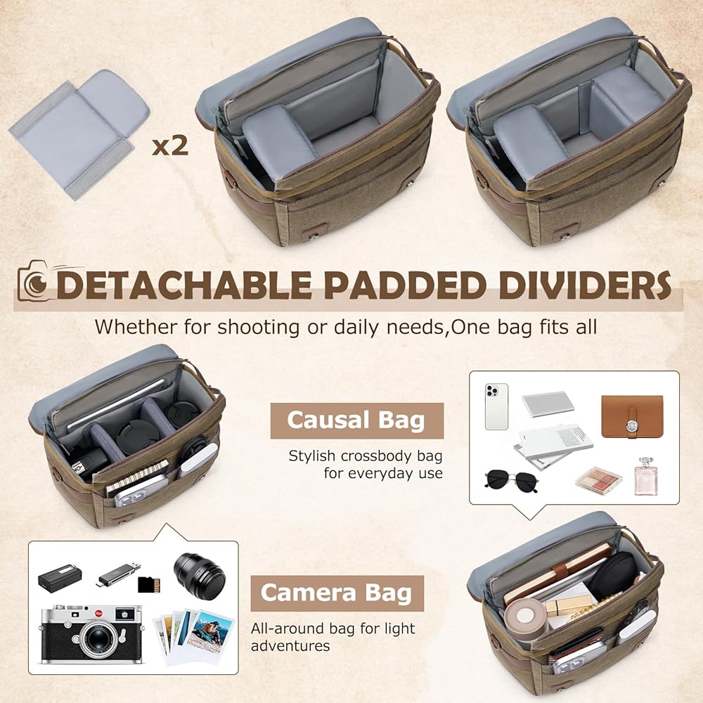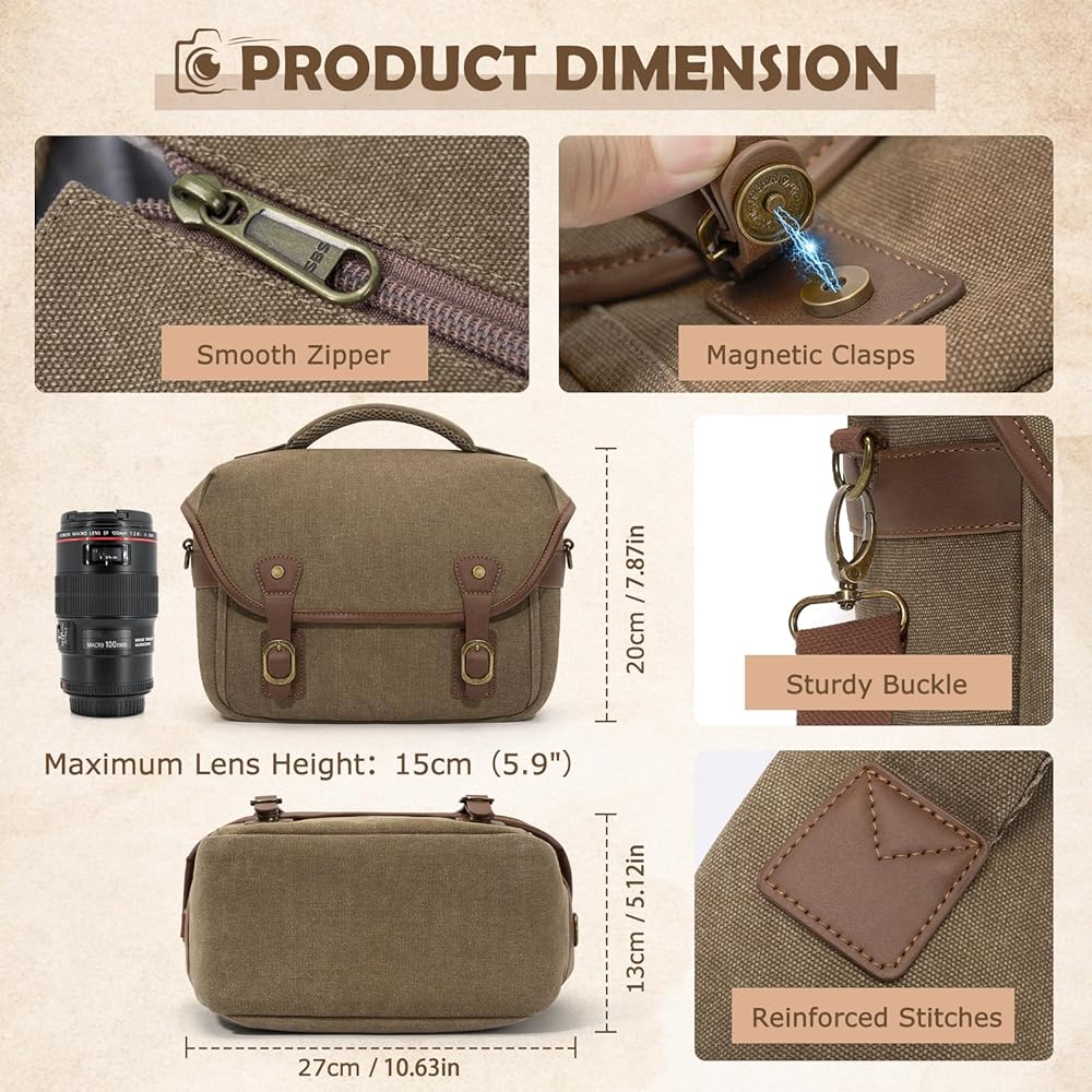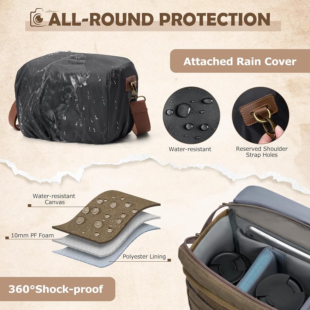 وظائف مقاومة للتسلية والبناء الوعرة: ابق على استعداد للأرضيات المفاجئة مع غطاء المطر القابل للفصل. مصممة مع السوستة المضادة للصدأ الشاقة والأجهزة المعدنية المقواة ، هذه حقيبة الكاميرا المستوحاة من الطراز القديم يضمن التشغيل السلس والمتانة ، مثالية للمشي لمسافات طويلة ، تنقل المدينة ، أو البراعم في الهواء الطلق