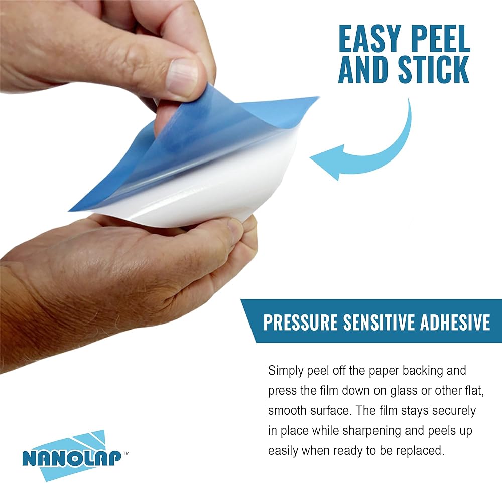 • PRESSURE SENSITIVE ADHESIVE: Pressure sensitive adhesive sandpaper sheets (PSA), easy peel and stick on any surface you want rather than using a traditional whetstone, lapping fluid, leather strop or lapping paste.