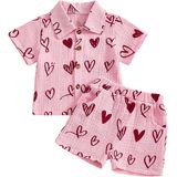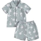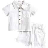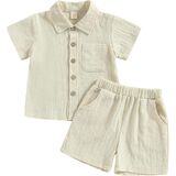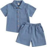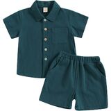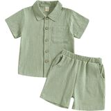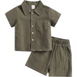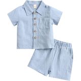 • Design: Baby boys' clothing sets, boys linen outfit, toddler boy matching set, short sleeve turn-down collar button closure a pocket at the front solid color short sleeve shirt and elastic waist solid color and pockets shorts