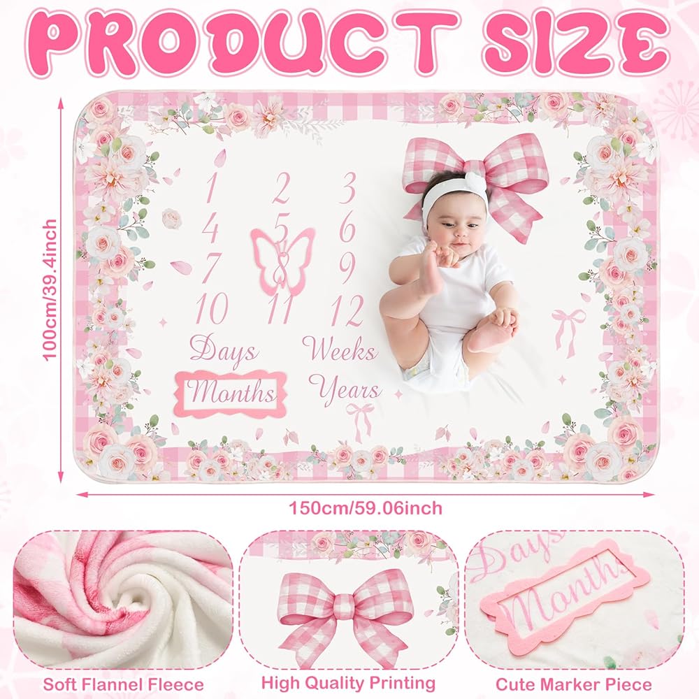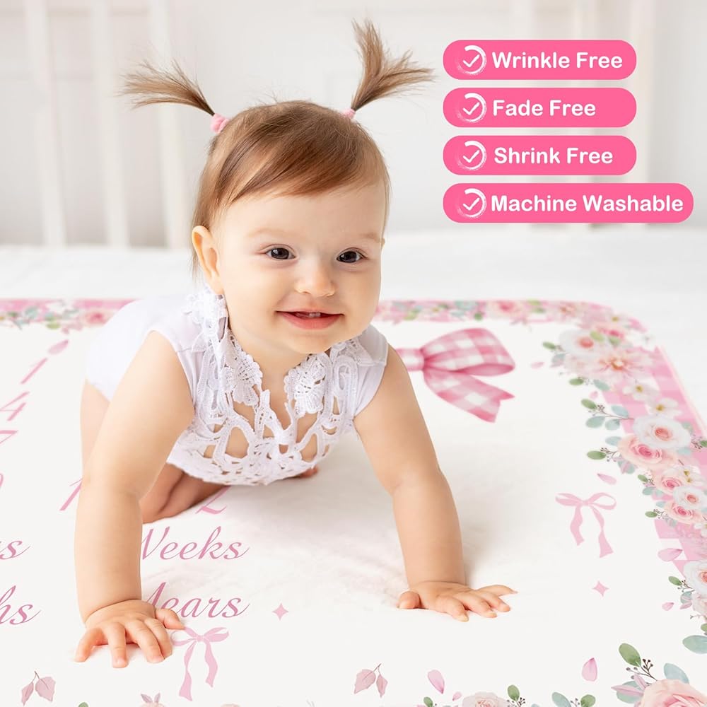 Appropriate Dimensions: the baby photo blanket measures roughly 39 x 59 inches/ 100 x 150 cm; It provides ample room to accommodate your growing child for a year and additional space to incorporate additional photo accessories like plush toys, flowers, and matching baby attire