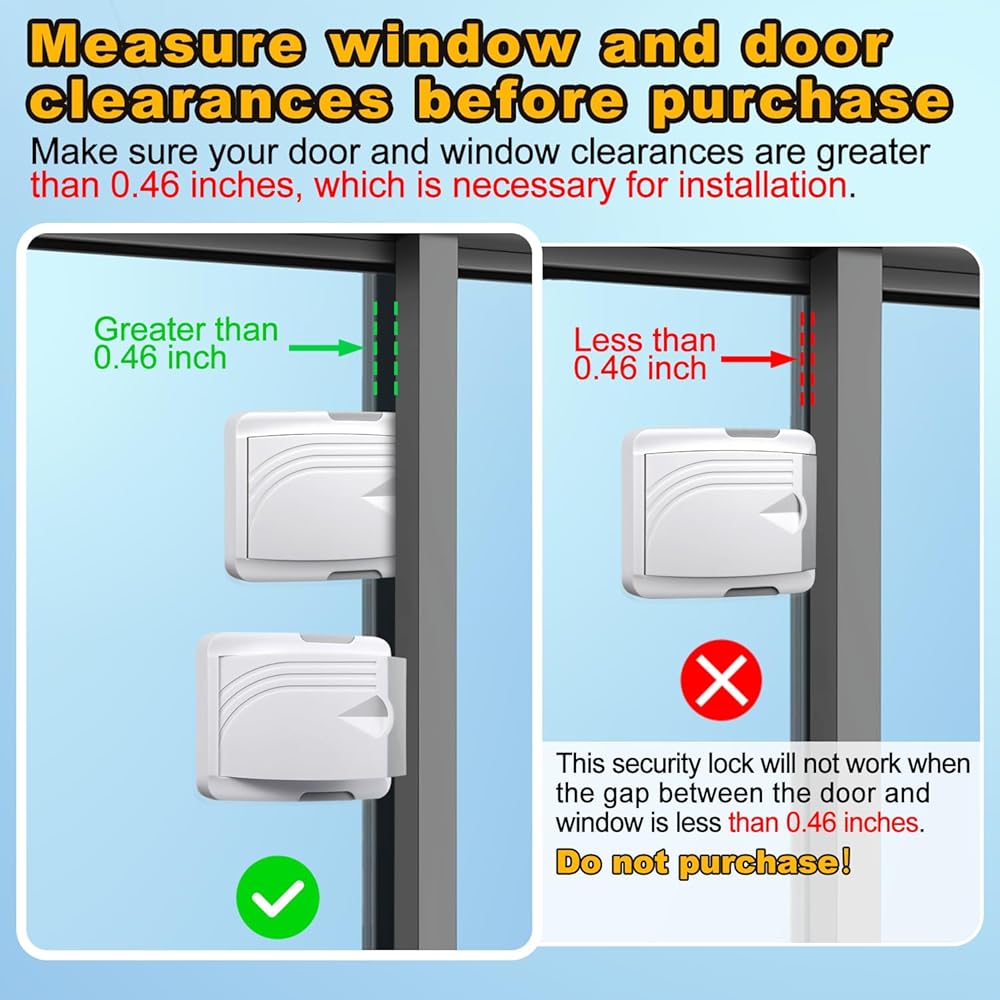 • قم بقياس خلوص الباب الخاص بك: قبل الشراء ، تأكد من وجود خلوص كافي بين بابك وإطار الباب (يجب أن تكون إزالة الباب أكبر من 1.15 سم / 0.45 بوصة حتى يعمل القفل بشكل صحيح على الباب المنزلق).