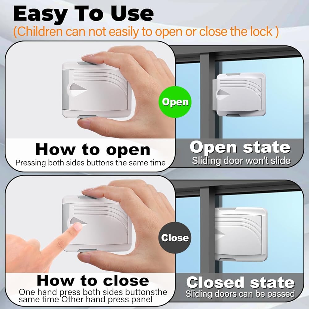 • 2025 قفل الباب المنزلق تم ترقيته : 2025 قفل الباب المنزلق على عكس قفل الباب الزجاجي المنزلق ، يتم تثبيت قفل الباب المنزلق هذا بجانب رف الباب ويعمل بمجرد الضغط على الأزرار المزدوجة في وقت واحد ، مما يمنع الباب المنزلق ويمرر بعضهما البعض. إذا كنت بحاجة إلى قفل مغلق ، فيجب عليك الضغط على كلا الأزرار الجانبية ولوحة القفل في نفس الوقت. (من السهل على الأطفال فتح الحوادث والمعرضة للحوادث)