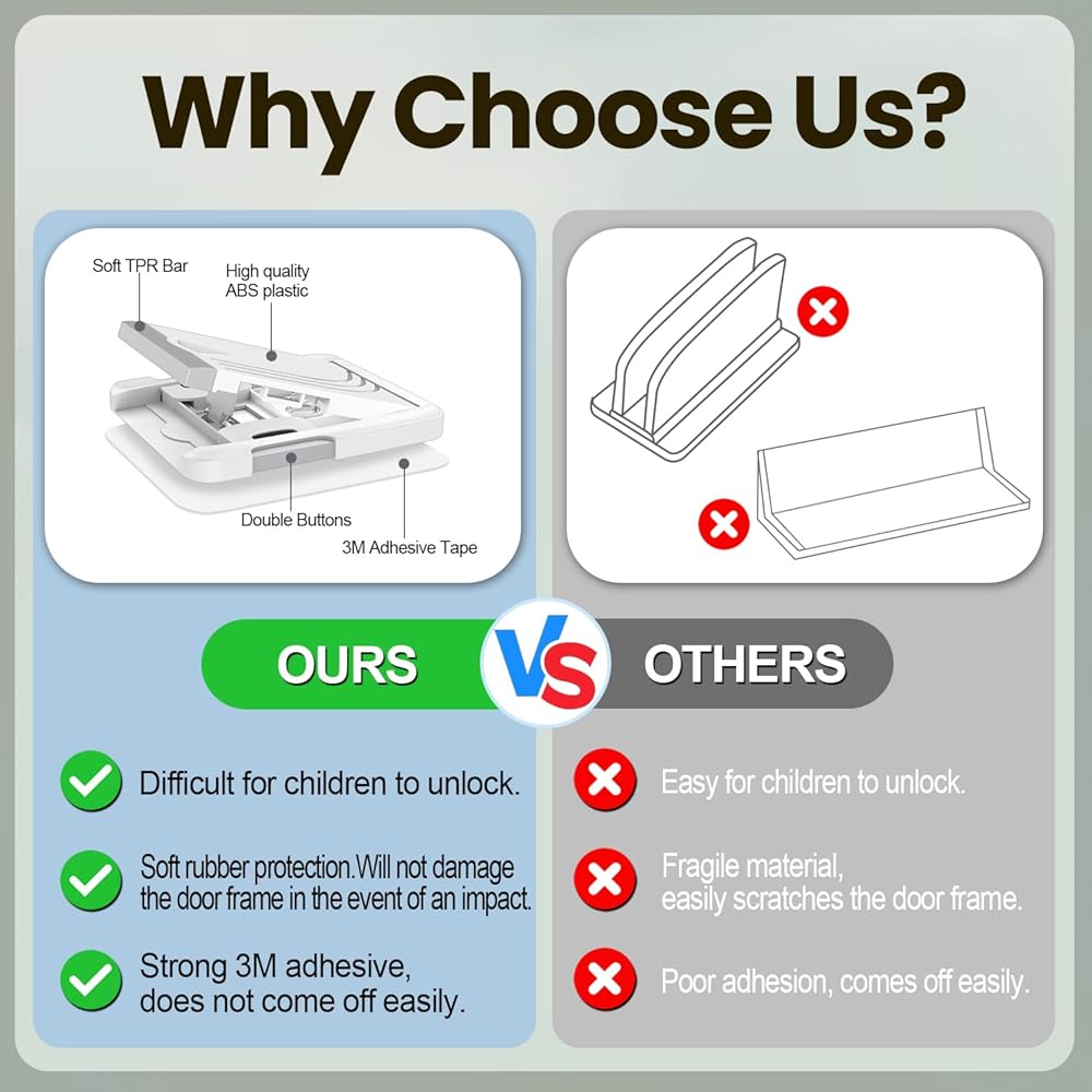 • المتانة القوية : إن قفل أمان الطفل مصنوع من البلاستيك عالي الجودة من البلاستيك ، وينبخ الفولاذ المقاوم للصدأ ، ومواد لاصقة قوية 3 أمتار ، لا داعي للقلق بشأن سقوط قفل السلامة والكسر. إذا كان لديك أي أسئلة أثناء استخدامه ، لا تتردد في الاتصال بنا ، وسوف نرد عليك في غضون 24 ساعة ونقدم لك بالتأكيد حلًا راضيًا.