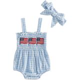 • Features】: first 4th of july baby girl outfit,Baby girl bodysuit features square neck, sleeveless, shirred bust, frill trim neckline, and bottom snap design for easy to put on and take off; Paired with contrasting plaid and letter/flower embroidered patterns, super cute for Memorial Day/4th of july