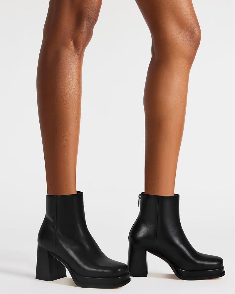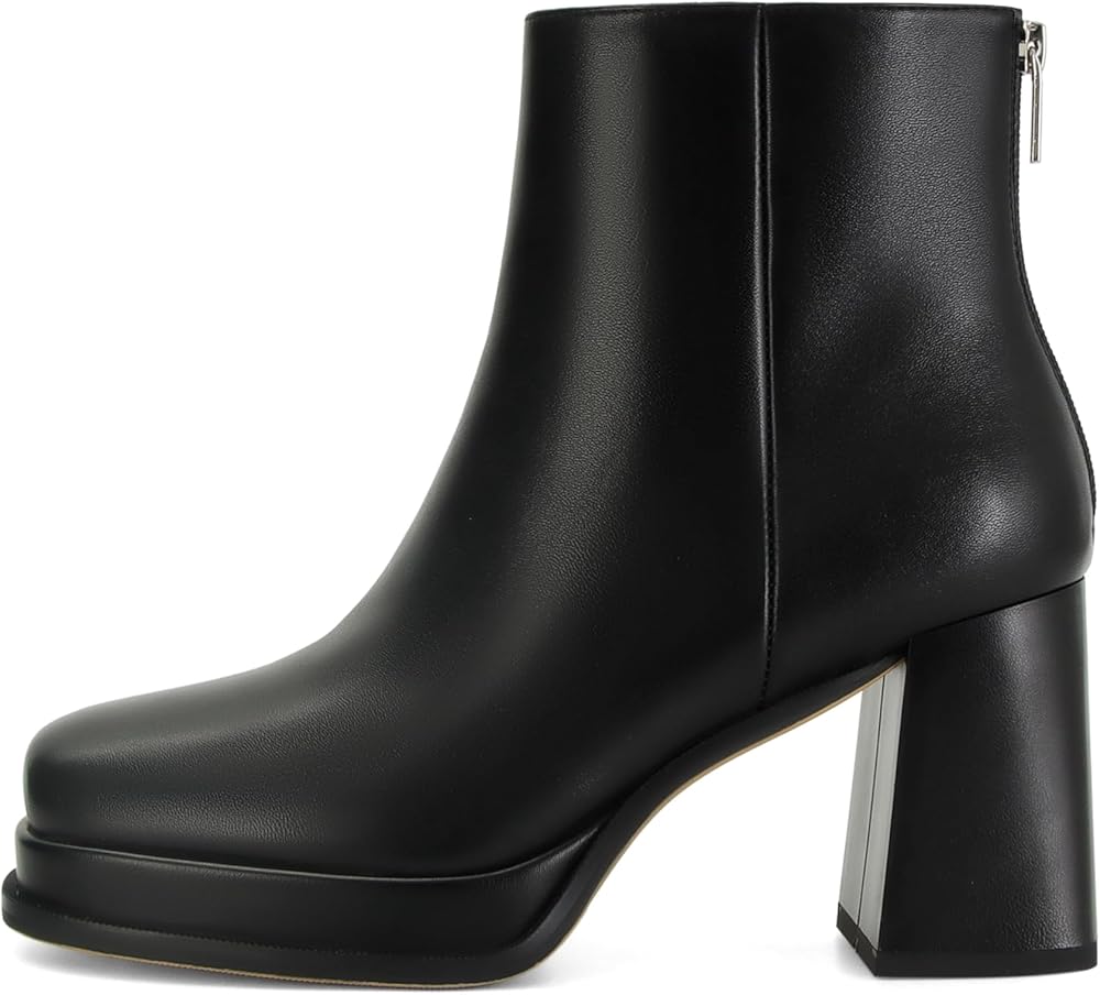 أحذية منصة أنيقة: تتميز أحذية الكاحل السوداء بالنساء بتصميم أنيق وحديث مع منصة 1.3 "(3.3 سم) و 4" (10 سم) كعب مكتنزة. مثالي لإضافة الارتفاع والأناقة إلى أي ملابس.