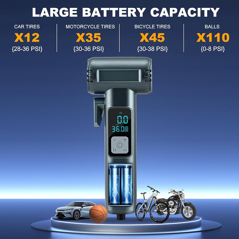 • متعدد الوظائف: لا يمكن استخدامه فقط كمضخة دراجات ، ولكن أيضًا كضرف طاقة لشحن الأجهزة الإلكترونية مثل الهواتف المحمولة. تم تجهيز مضخة هواء الإطارات مع ضوء LED و SOS Light ، مما يجعل من السهل تضخيم الإطارات وتغيير العجلات في الظلام. يجعل مصباح LED الخاص به من السهل العمل حتى في ظروف الإضاءة المنخفضة. يجعل تصميمه المدمج من السهل حمله ويناسبه في السيارة أو حقيبة الظهر. تحافظ مقصورة التخزين المصممة خصيصًا على الخلفية على إكسسوارات منظمة وتمنعها من فقدانها.