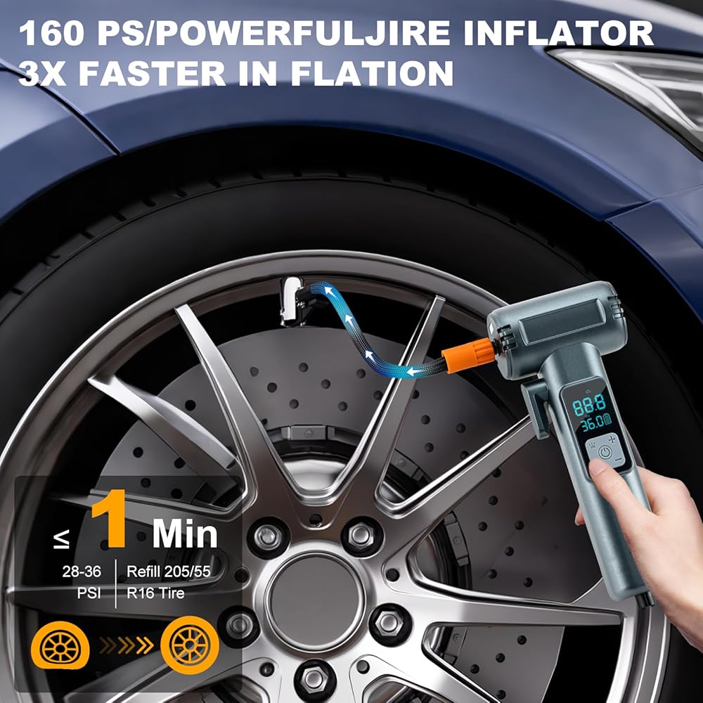 • تضخم الإطارات السريعة: تنفيس إطارات محمولة محمولة للسيارة الحد الأقصى للضغط 150psi وتدفق الهواء 35L/دقيقة. تحتوي مضخة الدراجات هذه على شريحة مضمنة عالية الأداء يمكنها تضخيم الإطارات بسرعة ؛ يمكن أن يؤدي إلى تضخيم إطار سيارة بالكامل في 40 ثانية (30-36psi) أو تضخيمها بالكامل في 5 دقائق (0-36psi).