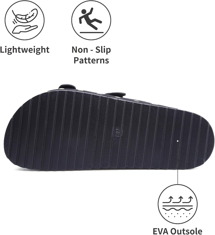 نعل الفلين المريح: تتميز الصنادل القابلة للتعديل بعلماً طبيعيًا لا يوفر فقط ملاءمة فريدة وشخصية أثناء ارتدائها ، ولكنها توفر أيضًا إحساسًا رائعًا وداعمًا مع كل خطوة تتخذها.