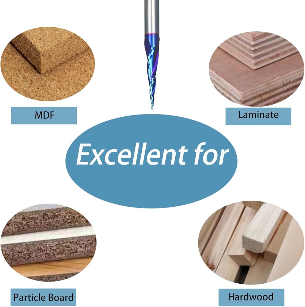 Versatile Compatibility: The ball nose end mill suit for CNC router and any plunge routers with 1/4" collet.Whether you're using it on a woodworking CNC machine or a metalworking CNC mill, this bit performs consistently well.