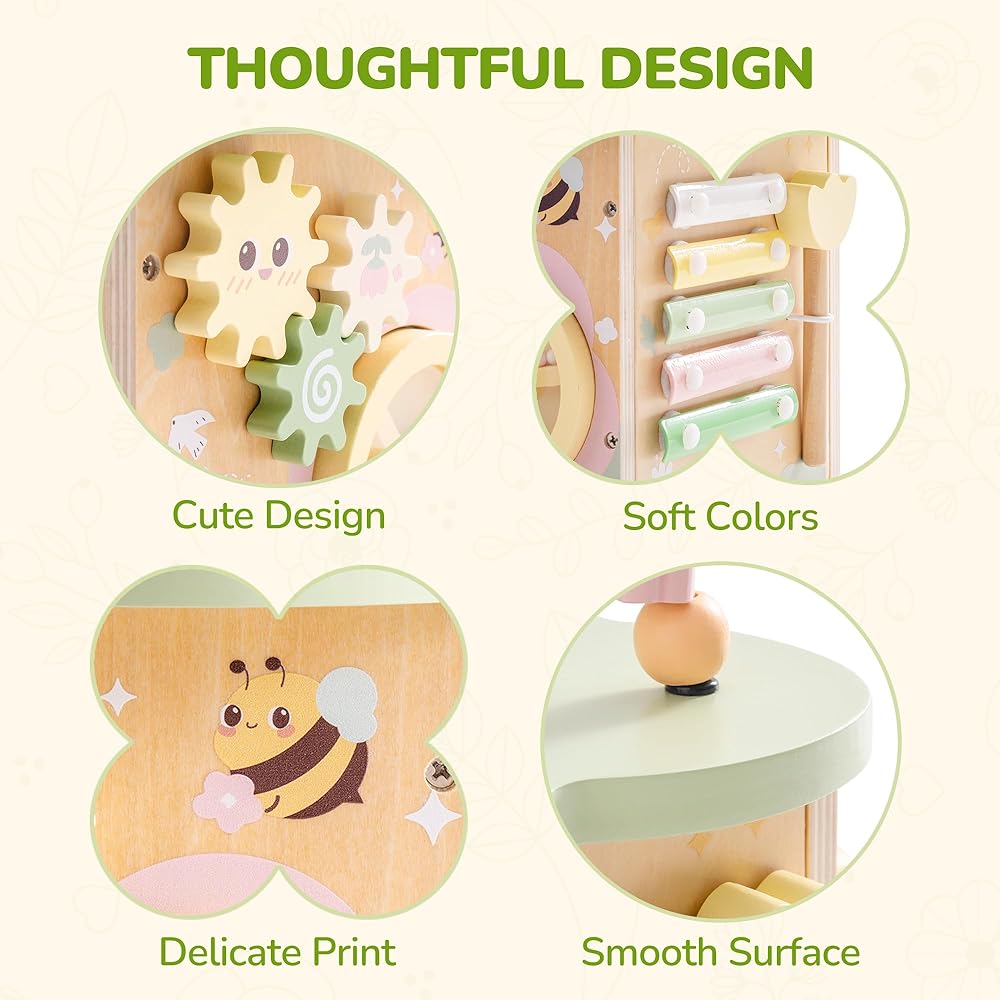• بلاد العجائب المليئة بالزهور: مستوحاة من حديقة ملونة ، يتميز مكعب النشاط بزهور لطيفة ، وطيور ودية ، ونحل صاخب ، وأكثر من ذلك. تخلق ألوان الباستيل الناعمة مساحة هادئة ومرحبة لطفلك لاستكشافها والاستمتاع بها.