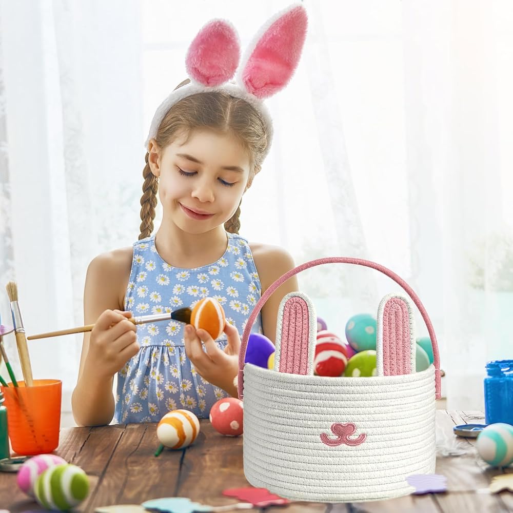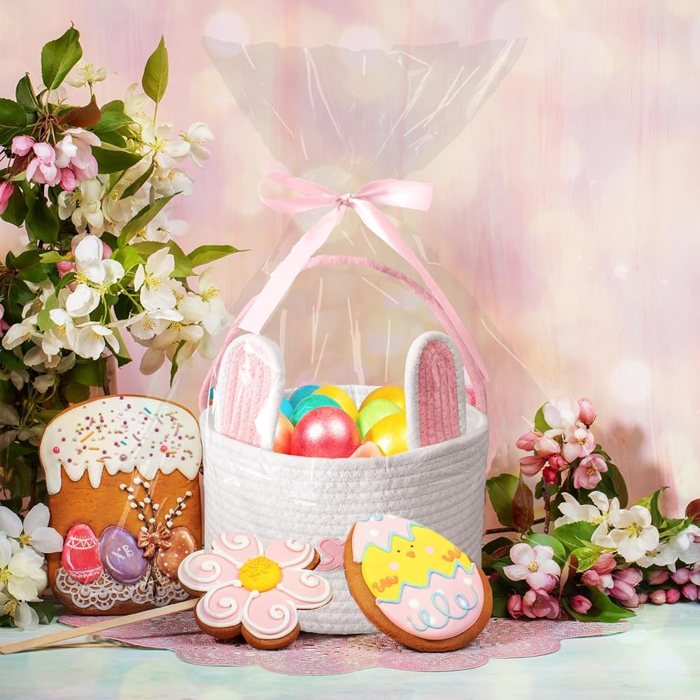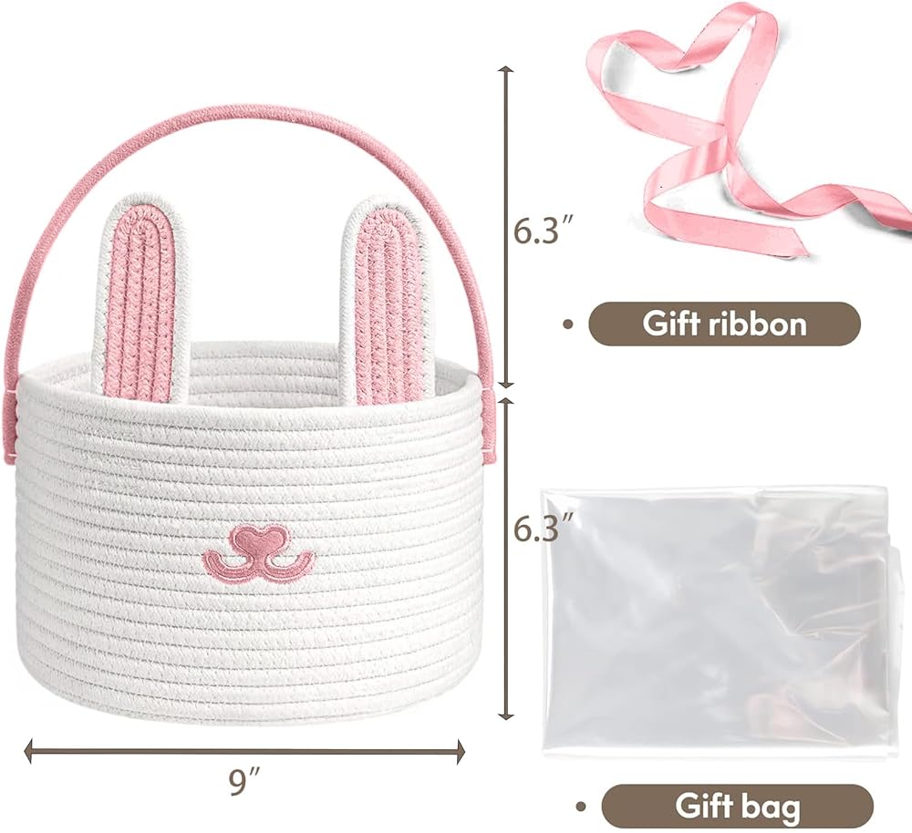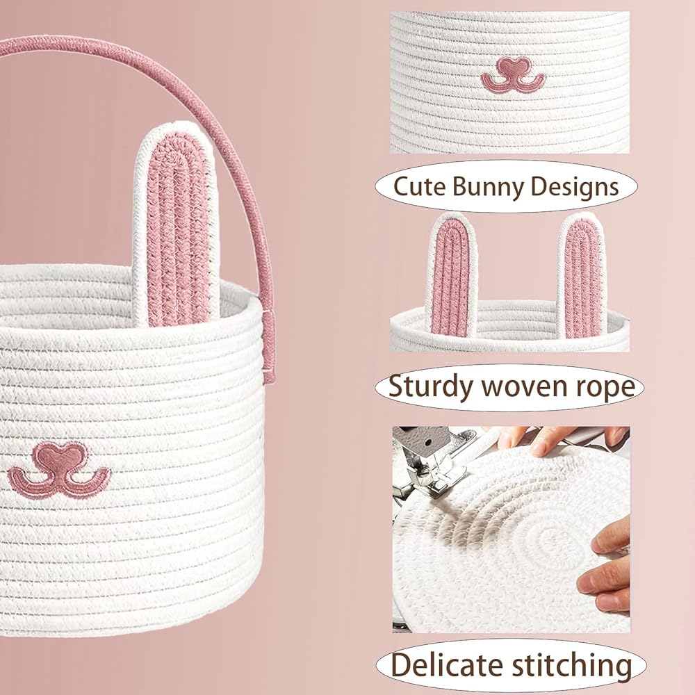 • 1.A -aader Easter Bunny Design - تم تزيين سلة حبل القطن المصنوعة يدويًا بزوج من أذني عيد الفصح الساحرة ، وهو مثالي لإضافة سحر احتفالي إلى صيد البيض أو الديكور المنزلي أو الهدايا خلال موسم العطلات.
