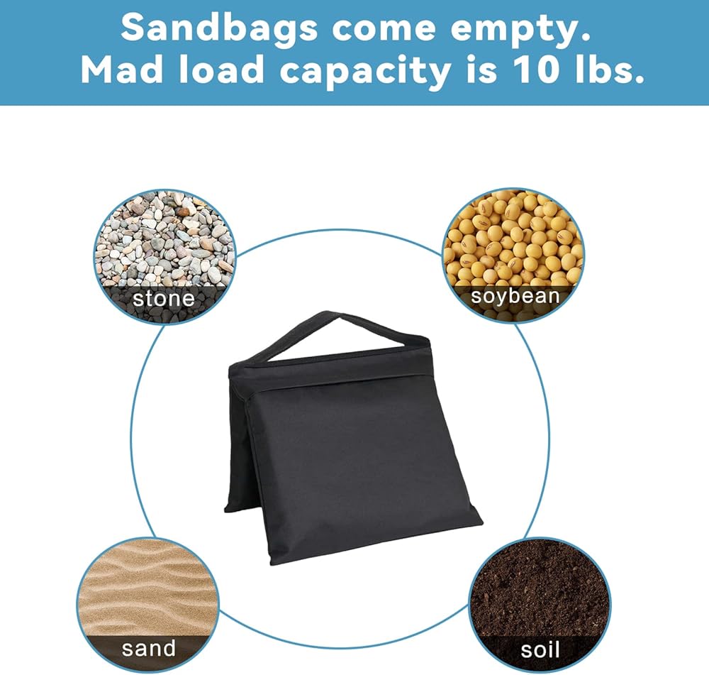 - من السهل استخدام الأكياس الرملية: ما عليك سوى ملء الرمال أو الحصى أو الصخور الصغيرة أو الحشوات الأخرى. (ملاحظات: 2 عبوات الأكياس الرملية تأتي فارغة.)