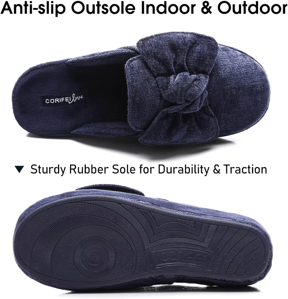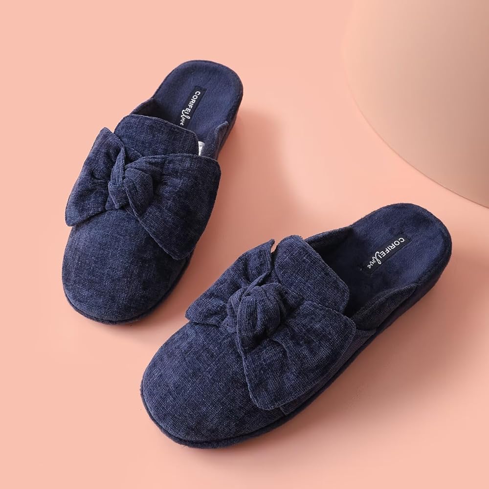 أحذية منزل أنيقة: تصميم القوس لطيف ، نعال بغل جميلة مع كعب سميك. اللون الصلب يظهر الثقة والرفاهية. مثالي للعمل من المنزل ، حفلة للسيدات ، المشي غير الرسمي ، البقاء مع الحيوانات الأليفة.