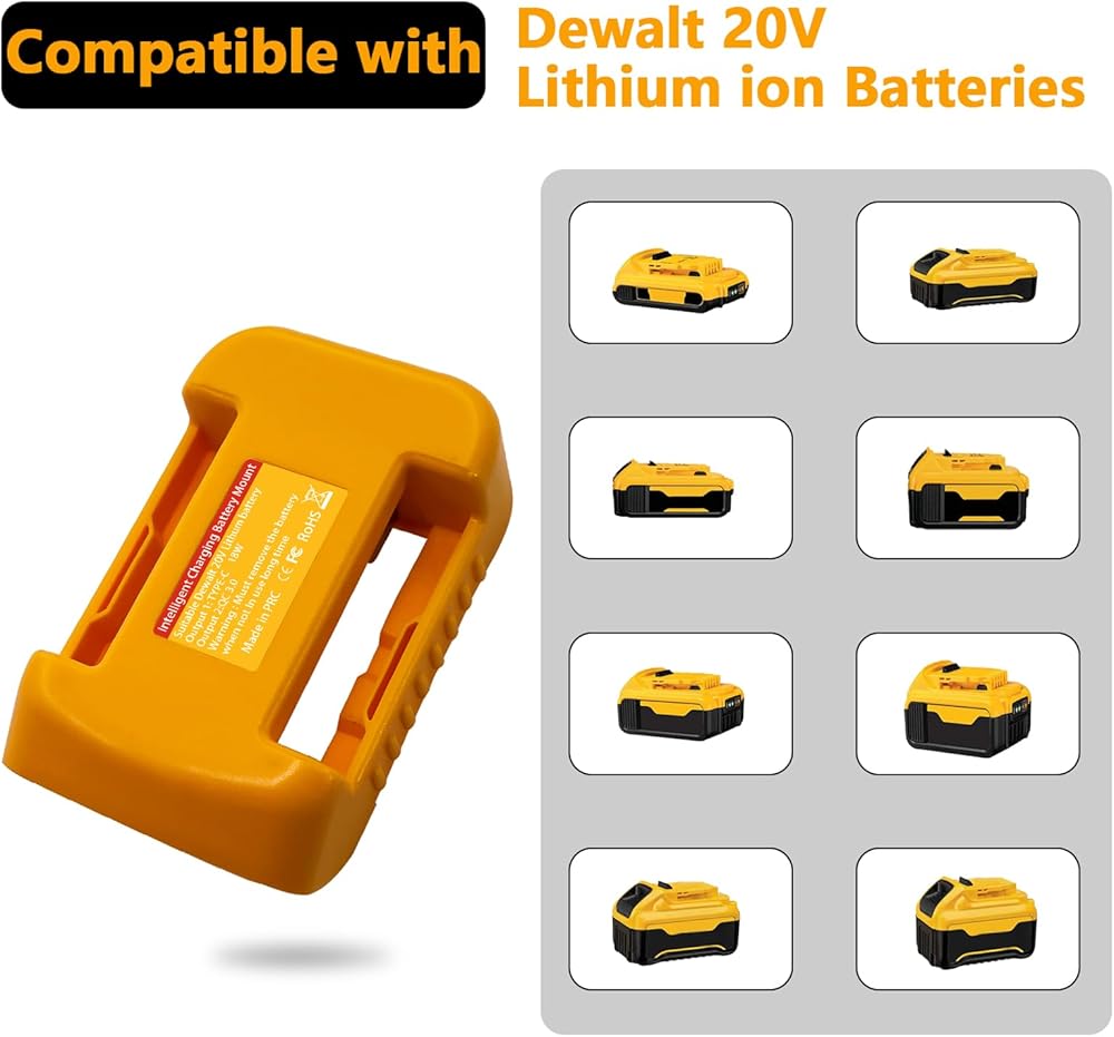 حامل البطارية: يمكن تركيب محولنا على الحزام ، وشحن وشحن حامل 2 في 1. مريحة جدا لحمل البطاريات. إنه يتصاعد على حزام لحمل البطارية معك وشحن هاتفك الخلوي وأجهزة الكمبيوتر المحمولة وأجهزة الألعاب ومشغلات MP3 ومشغلات MP4 والكاميرات والقراء والأجهزة الإلكترونية ذات الطاقة المنخفضة الأخرى. 20v dewal.t USB Wallmount
