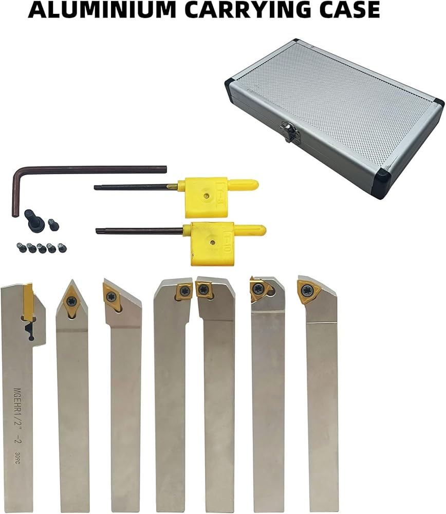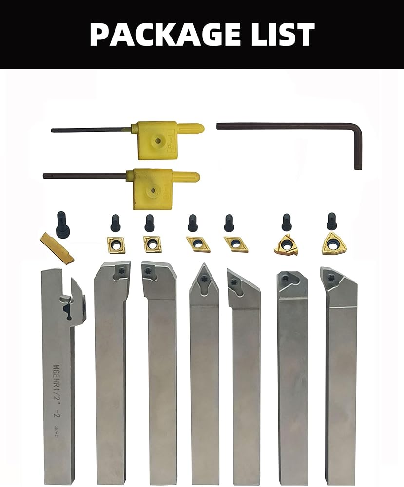 يتضمن المنتج : 7pcs حاملي مخرطة مع إدراج معبأة في حالة حمل ، من السهل حملها. يمكن للتخزين توفير مساحة أكبر