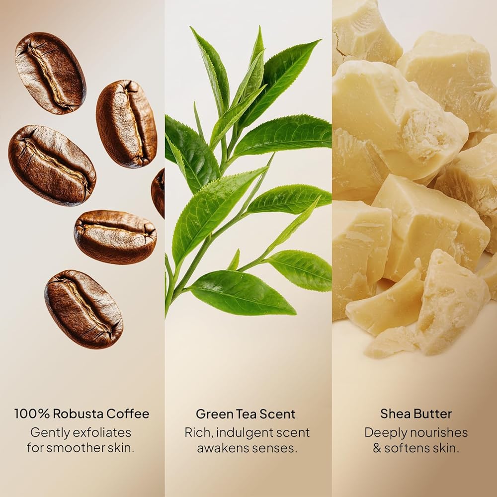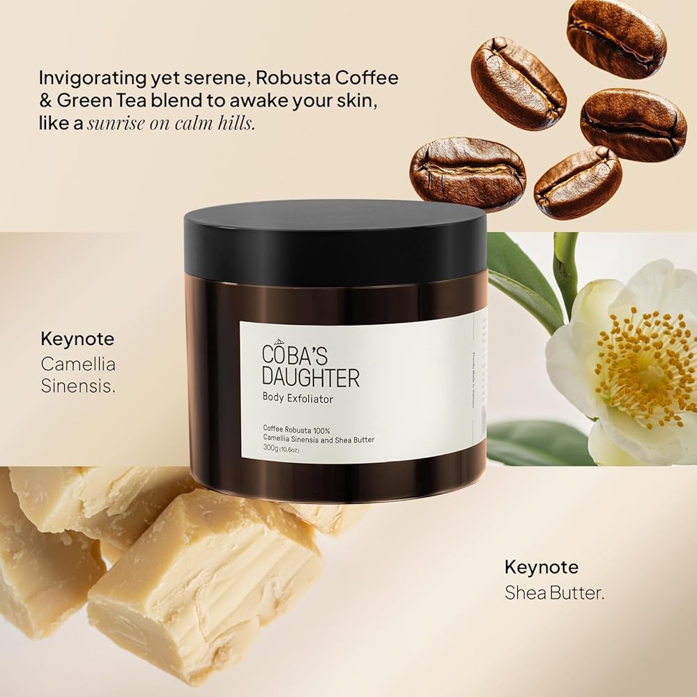 ابنة كوبا 100 ٪ قهوة روبوستا قهوة فرك مع ماتشا وشيا زبدة | تقشير ، ترطيب الجلد وتقليل علامات التمدد والسيلوليت | آمن للحمل | نباتي ونظيف الجمال (10.6 أوقية)