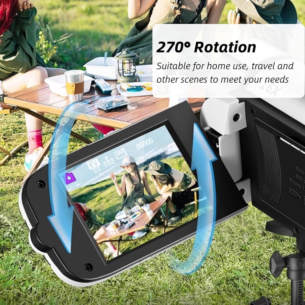 التنوع والراحة: مع دوران 270 درجة ، تتكيف كاميرا الفيديو الخاصة بنا تمامًا مع احتياجاتك عبر بيئات مختلفة سواء كانت في المنزل أو السفر أو التقاط كل لحظاتك الثمينة في الدقة العالية. تكمن راحتها في المراجعة في الوقت الفعلي أثناء التنقل