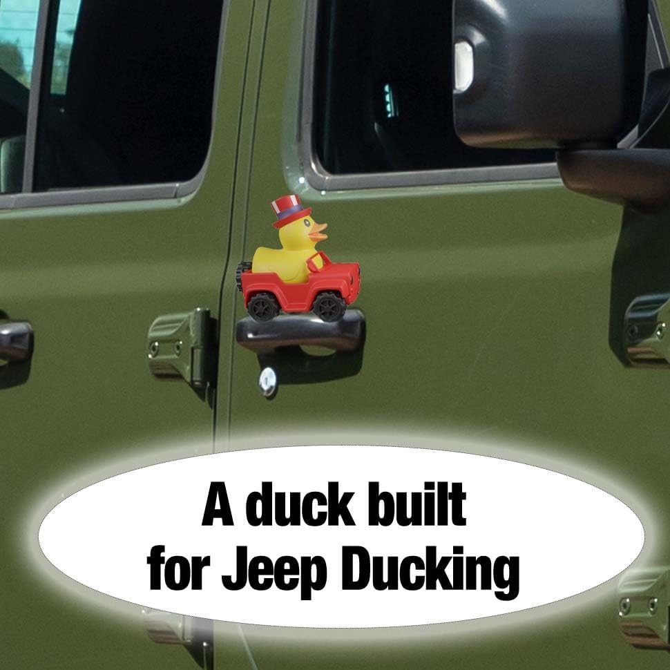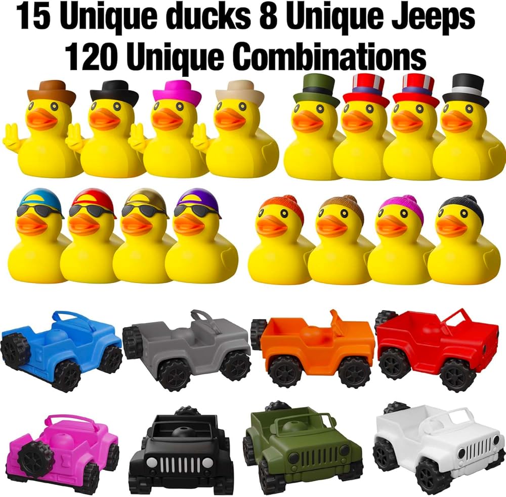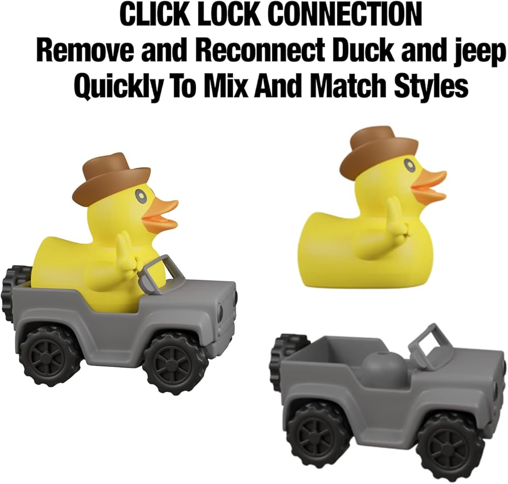 Each duck can be removed from the jeep and clicked into another jeep, making for an endless combination of duck styles and jeep colors to perfectly suit the jeep you are ducking