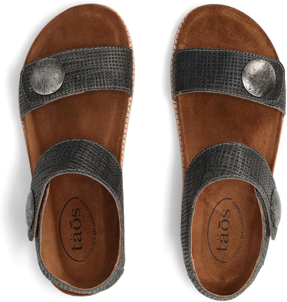 Top Shelf is a new addition from Portugal with beautifully embossed European leathers. This take on our beloved Luckie style features our signature PU footbed lined with premium suede offers unmatched comfort. Rustic metal medallions add a fun boho-chic finish - making it a versatile finishing touch for everyday outfits or date night!