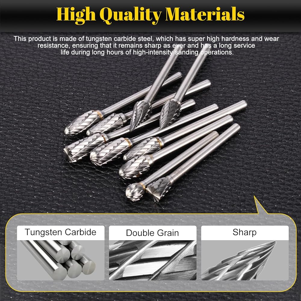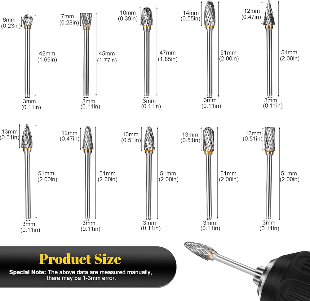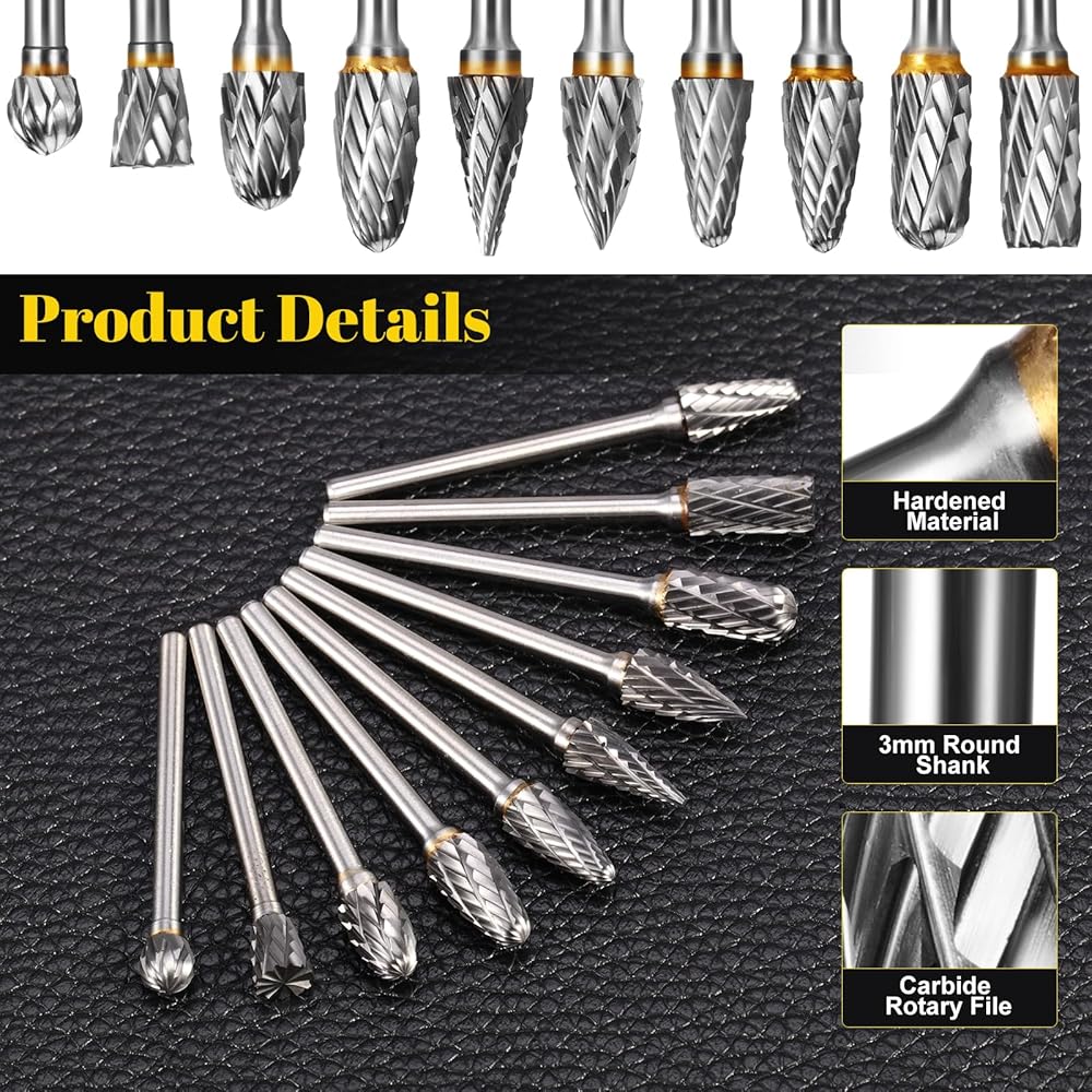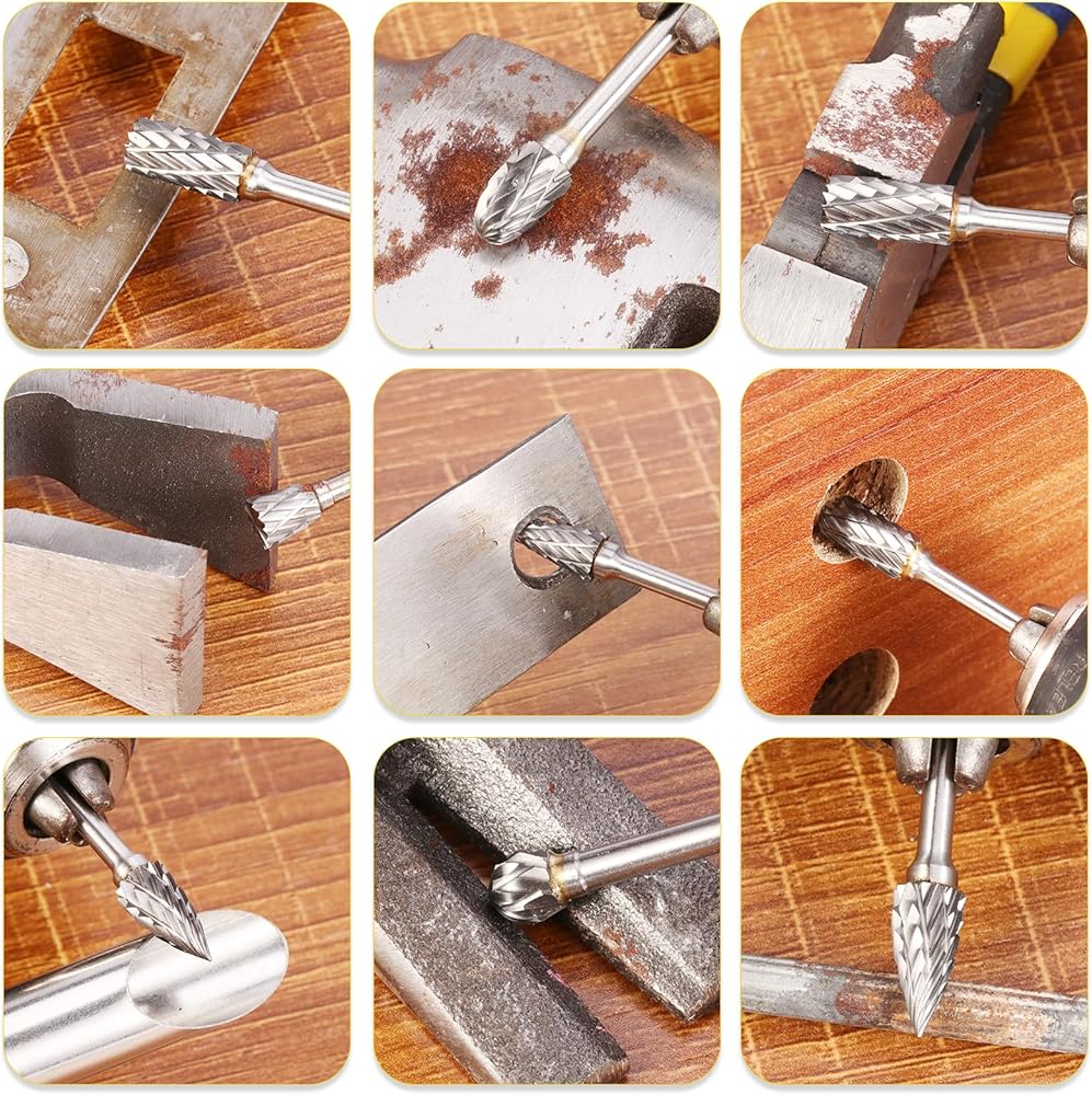 OCR Carbide Burr Set with Double Cut, Tungsten Carbide Burr Compatible with Rotary Tool, Shaft Diameter 3 mm, for Attachments Cutting, Woodworking, Carving, Metal Polishing