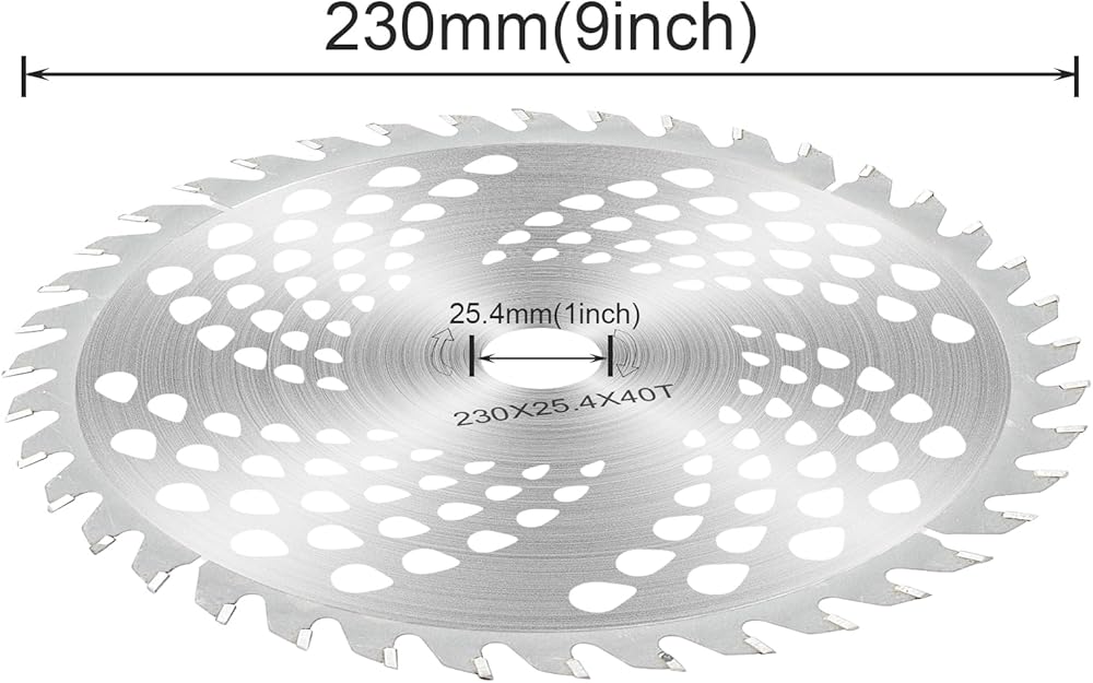 BUILT TO LAST: This weed wacker blades 1" arbor and 230mm diameter, circular Saw blades are treated for anti-corrosion, so it stay safe even in harsh conditions. Advanced construction means you get the longest life possible from each blade.