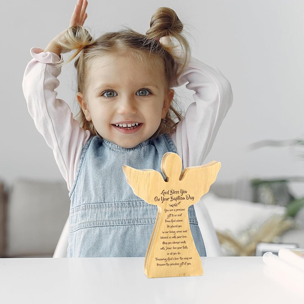 Nursery Decoration Gift. This wood carving baptism gift in the shape of an angel for our lovely baby girl and baby boy is a confirmation gift that praises and affirms the baby. As parents, we also need to remind ourselves to set an example and always send encouragement to our children so that they can grow up in a healthy and happy environment.