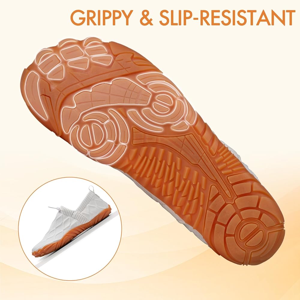 الحماية الشاملة : باطن مطاطي سميك وقبعة إصبع من أحذية الشاطئ السباحة تحافظ على محمي قدميك بالكامل من الأشياء الحادة وتوفر توسيد. توفر القطع ثلاثية الأبعاد غير المنقولة قبضة استثنائية حتى في الظروف الزلقة. هذا يجعلها خيارًا رائعًا للرياضة الخارجية.