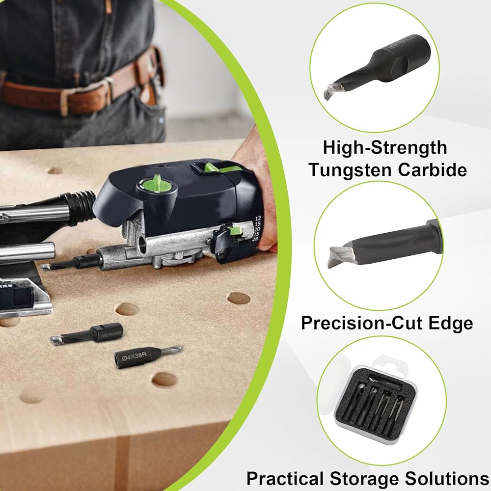 متوافق مع DF500 Domino Tenons: أجزاء جهاز التوجيه Carbide Precision تتوافق مع نظام Festool DF500 ، مما يلغي بتات Domino Router تمايل على الوظيفة. مجموعة Domino Joiner Cutter هذه مناسبة للخشب الصلب ، الخشب اللين ، MDF ، الخشب الرقائقي ، الصفائح ، البلوط إلخ.