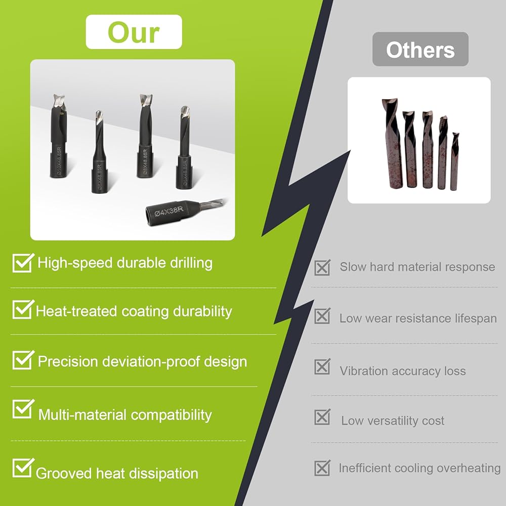 التصميم الحلزوني الفعال: 2 حواف القطع | 2 المزامير الحلزونية. يمنع حفر الكربريد الصلب دومينو رقائق رقائق أسرع بنسبة 40 ٪ ، ويقوم بشكل أفضل بإزالة الحلاقة في الأخاديد الأعمق ، والغضب ، والثغرات المستقيمة ، ويمنع الانسداد وينتج عن ثقوب خالية من الرقائق ، أكثر سلاسة ، أنظف في الأخشاب الصلبة