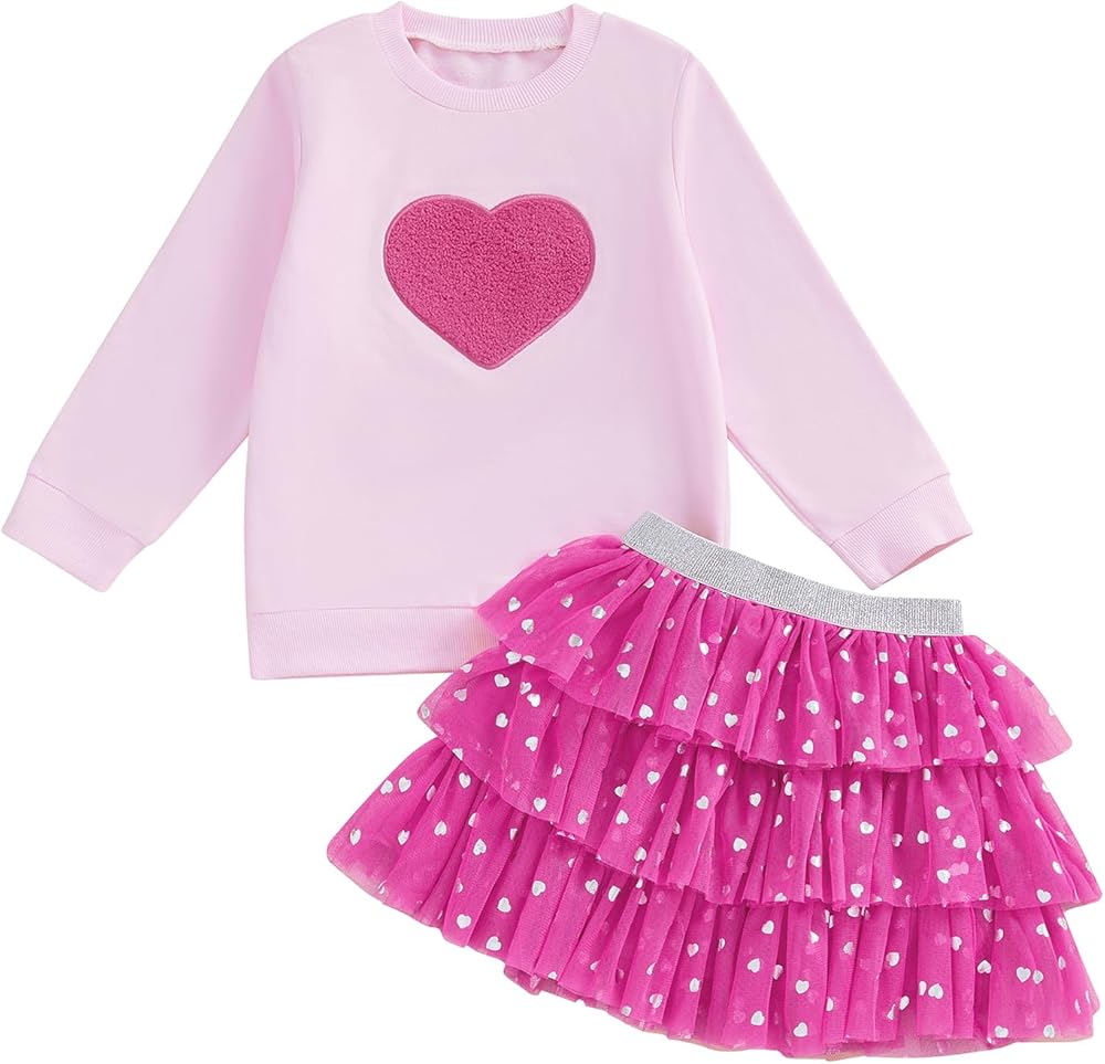 التصميم الكلاسيكي: ملابس عيد الحب للفتيات الصغار ، ملابس عيد الحب. قميص الفتاة الصغار الفتاة ، تنورة Toddler Heart Tutu. ستحصل ابنتك على الكثير من المجاملات في ملابس صغيرة من قطعة صغيرة
