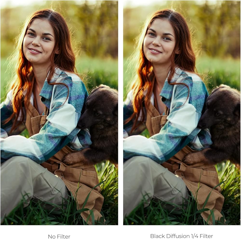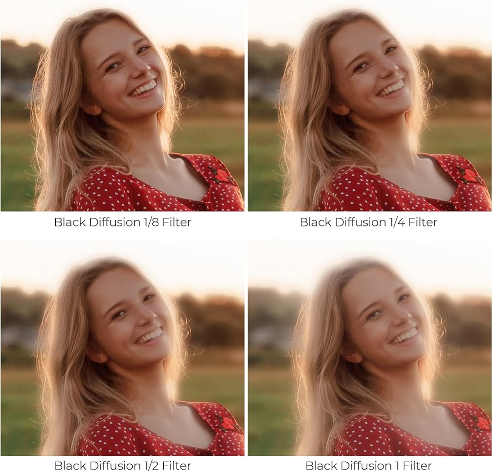 • 【المشاعل البارزة الناعمة ، التباين المنخفض】 هذا الترشيح الأسود 1/4 يمكن أن يخفف من تجاعيد جلد الوجه ، النمش ، والمسام ، مما يجعله أكثر حساسية ، ممتلئة ، ورائعة. يمكن تحقيق تأثير فيلم Mist بشكل أفضل ، حيث يظهر تأثيرات الفيلم بشكل حلم.