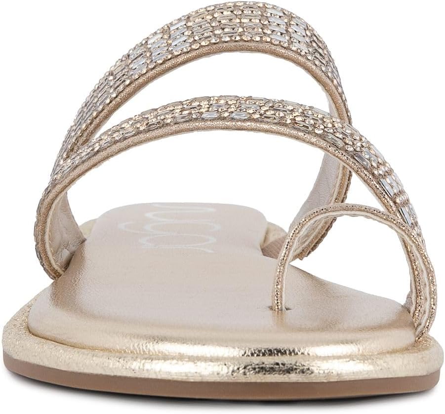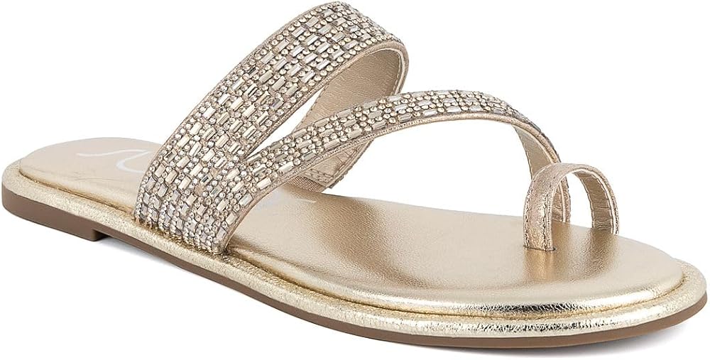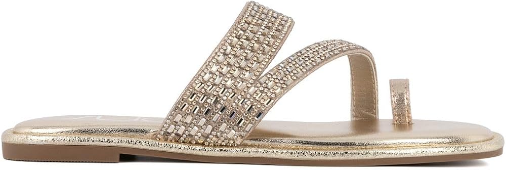 Features a chic toe loop and sparkling rhinestone accents, perfect for adding a touch of glamour to casual or dressy outfits.