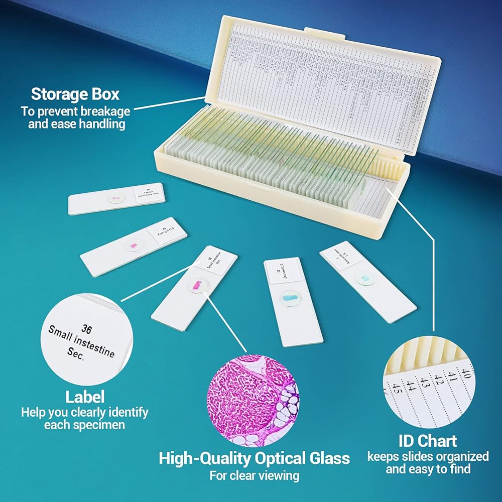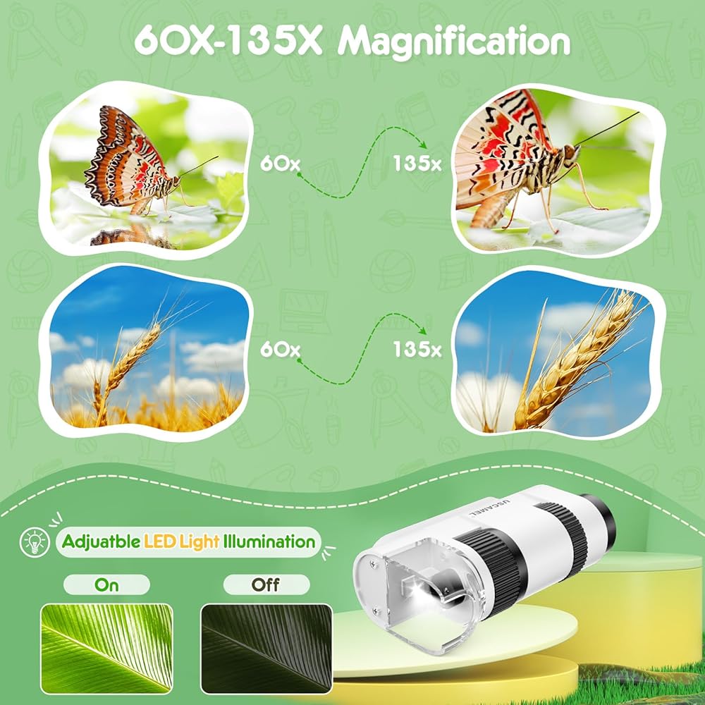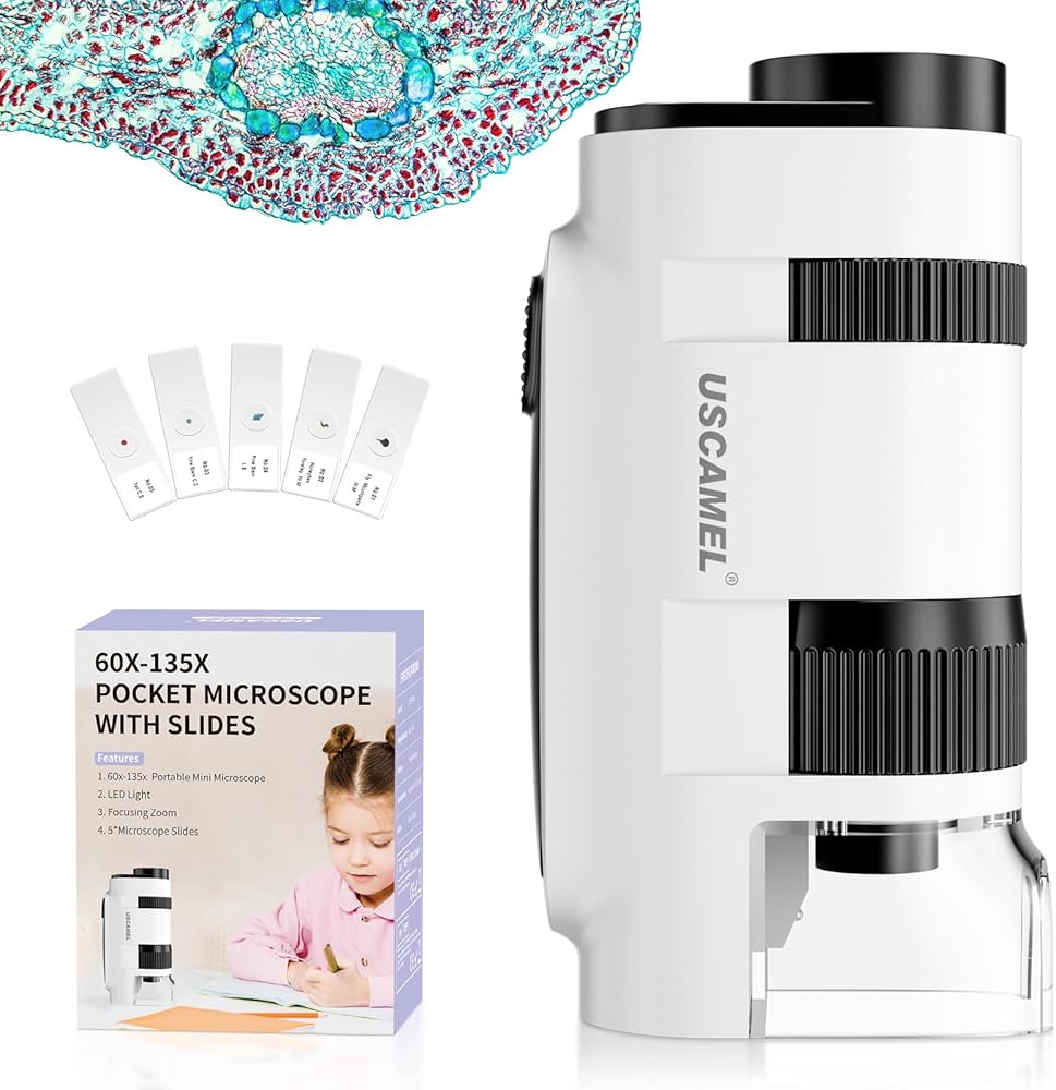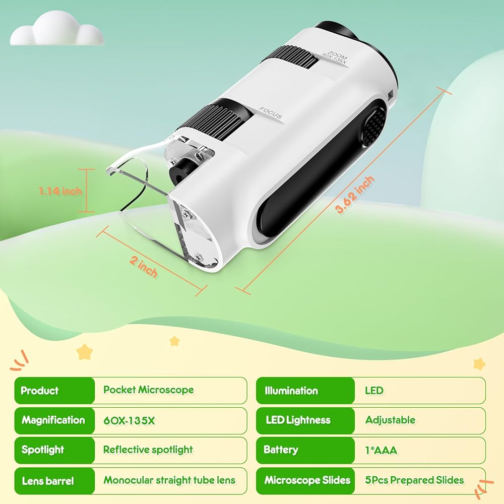 135x mini microscope و 50 شريحة مجهرية محضرة مع العينات