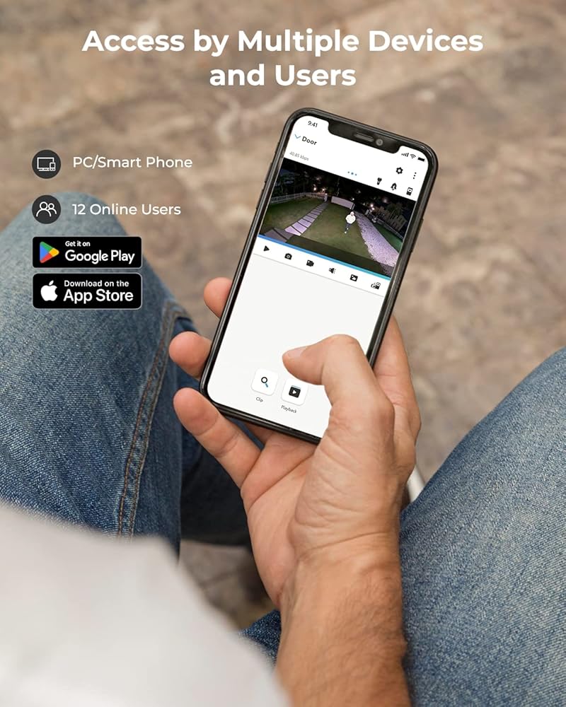 8MP Super HD Night & Night: تتيح لك دقة 6 ميجابكسل رؤية كل التفاصيل بوضوح. تتيح لك الرؤية الليلية التي يبلغ طولها 30 مترًا والرؤية الليلية الملونة التي تم تمكينها بواسطة الأضواء الكشف عن الأضواء التمسك بأي حركات مشبوهة حتى في الظلام.