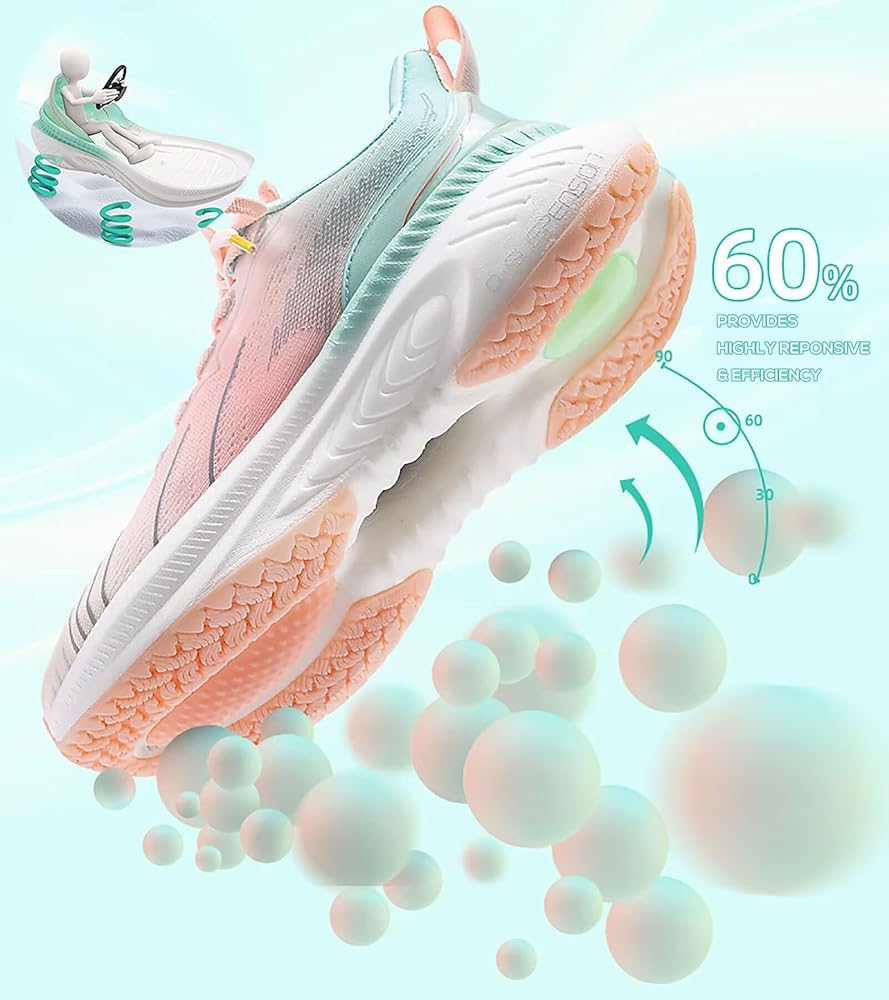 الهبوط الناعم-يجمع بين النعل الأوسط الرغوي كامل الطول مع وحدة ألواح ألياف الكربون المضمنة في قوس القدم ، فهي تلبي جميع أنواع الرياضيين وتوفر هبوطًا لتوفير الساقين بالإضافة إلى تجربة إجازة إيجابية وإيجابية.