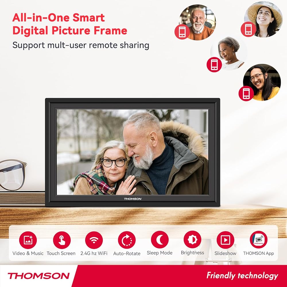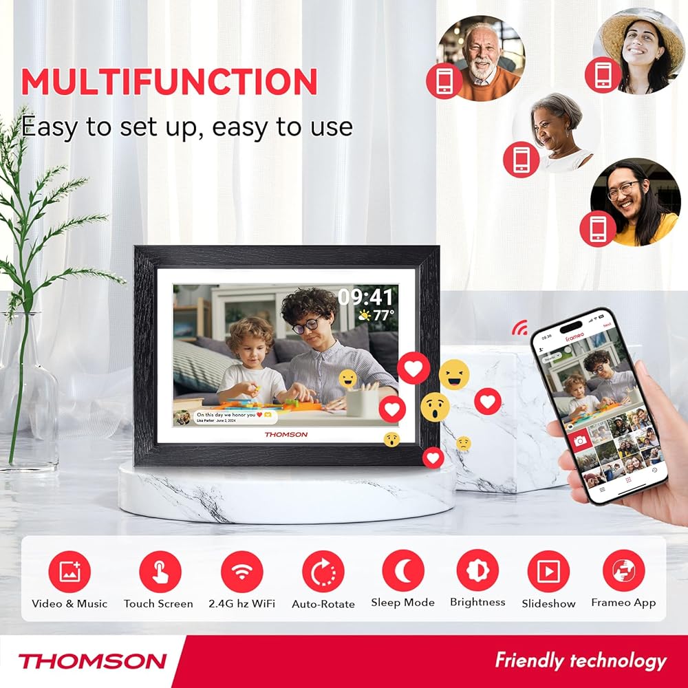 Wonderful Gift For Lover: The Frameo digital frame wifi is an immersive and delightful way to display and enjoy wonderful times. So giving this to a parent or friend is a no-brainer. Meanwhile, it's the perfect addition to home decoration and can even be used as a tool to advertise products or display work. The perfect gift for family reunions, Mother's Day, Father's Day, anniversaries, birthdays, Christmas, Thanksgiving and more