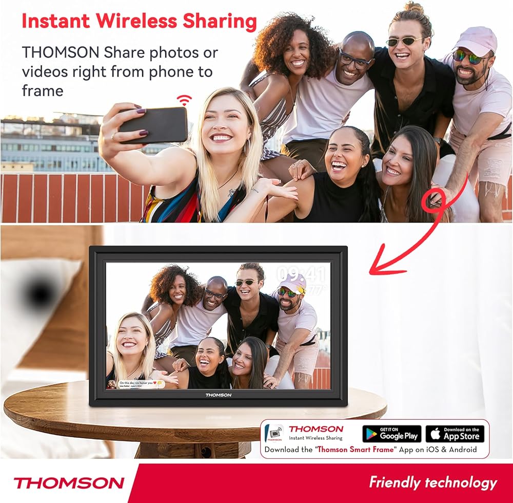 Instant Sharing with Frameo App: Connect the electronic photo frame to WiFi and download the free Frameo app to your phone. Easily share photos and videos (up to 15 seconds) with friends and family via the app, no matter where they are in the world.Frameo is an easy way to share your photos or videos with the people you love. WIFI digital photo frame and let friends and family enjoy your best moments
