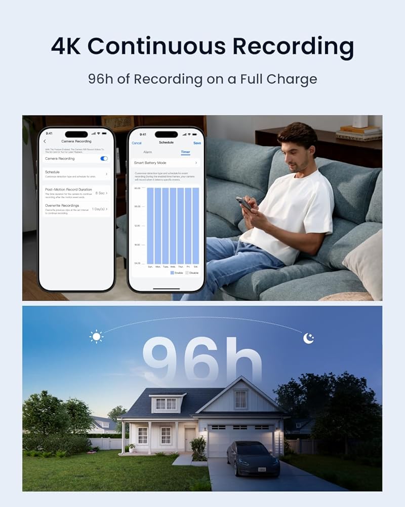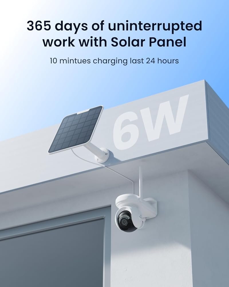 الإعداد السهل بنسبة 100 ٪ من الأسلاك: تعمل الكاميرا على WiFi 2.4/5 جيجا هرتز ويتم تشغيلها بشكل مستمر بواسطة لوحة الطاقة الشمسية 6W الجديدة ، مما يحررك من متاعب شحن البطارية المتكررة. باستخدام هذه الكاميرا اللاسلكية التي يسهل تثبيتها ، يمكنك بناء نظام الأمان المستقل في غضون دقائق.