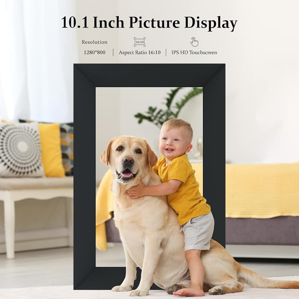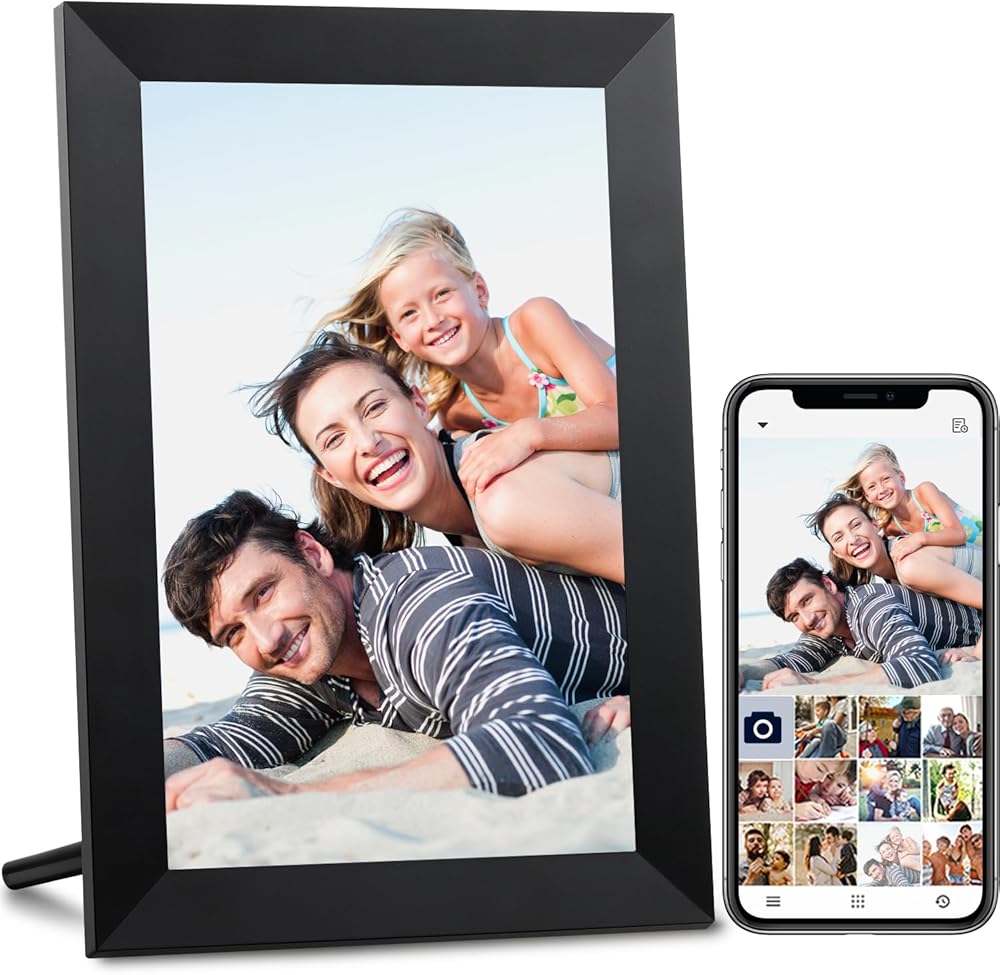 AEEZO 10.1 بوصة WIFI إطار الصورة الرقمية ، IPS شاشة اللمس إطار صورة سحابة ذكية مع تخزين 32 جيجابايت ، وسهولة الإعداد لمشاركة الصور أو مقاطع الفيديو عبر تطبيق AIMOR ، الدوار التلقائي ، الجدار القابلة للتجول (أسود)