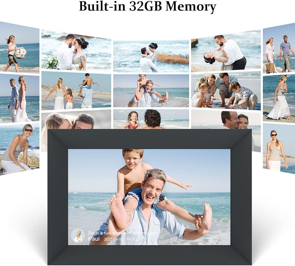 • 【Auto-Rotate Digital Photo Frame】The digital picture frame can automatically rotate photos to adjust the direction, which allows you to place the WiFi digital photo frame in either portrait or landscape mode or on the wall. Built-in 16GB memory enpowers a huge capability of storage. Also the digital picture frames support max 64GB SD card or USB driver for file management.